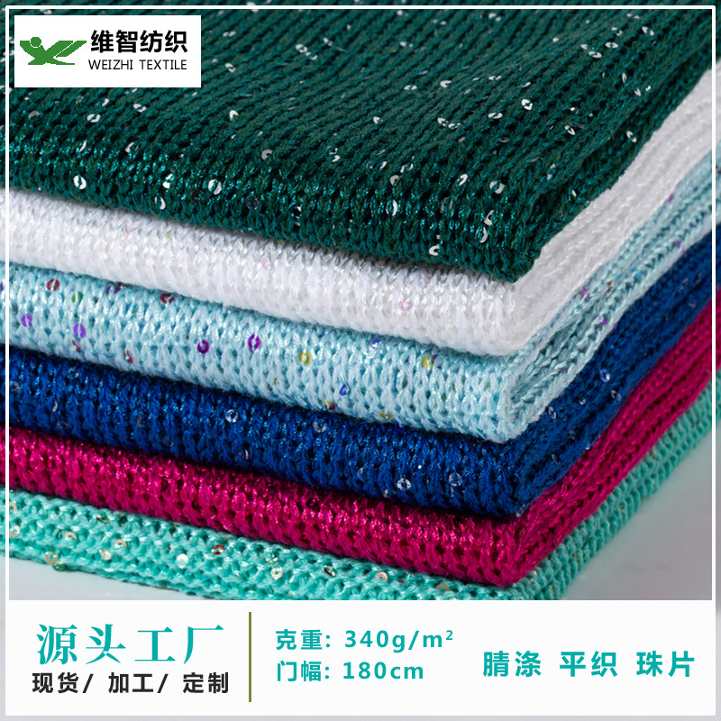 高品質のスパンコールビーズポリエステルニトリル混紡ニット生地カラースパンコール服スカート生地平織り平針布