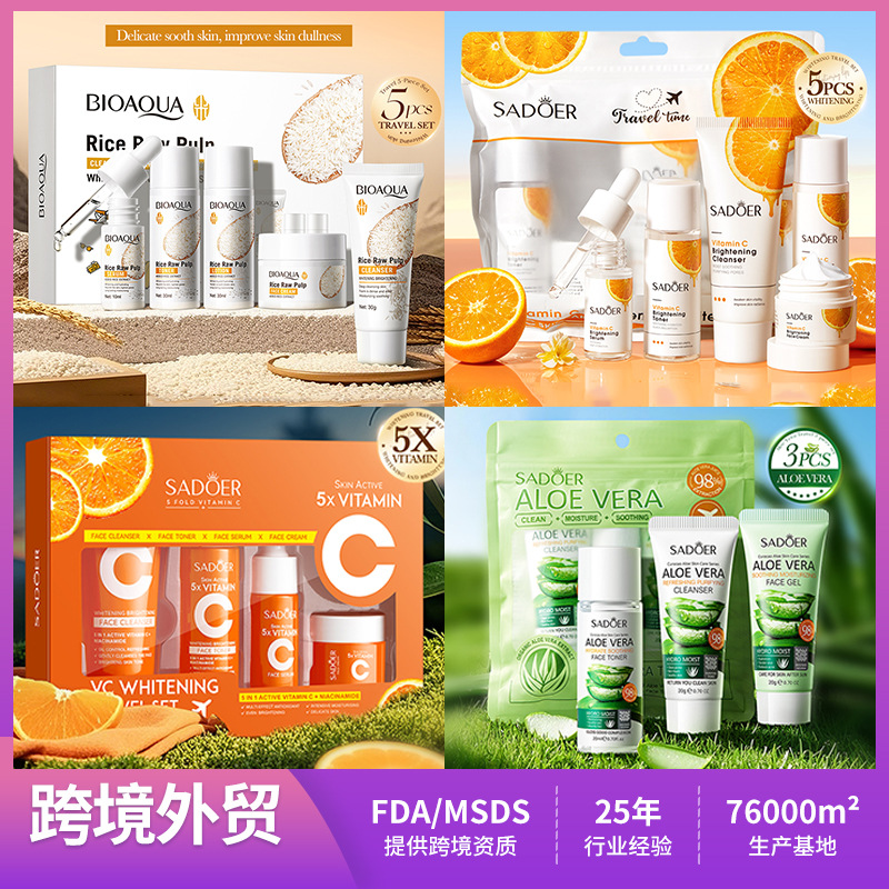 跨境现货旅行套装系列 BIOAOUA美白滋润便携洁面套装外贸工厂直销