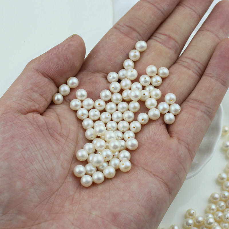 天然淡水真珠baby珠円形穴付き半製品材料小電球散珠裸珠配珠diy