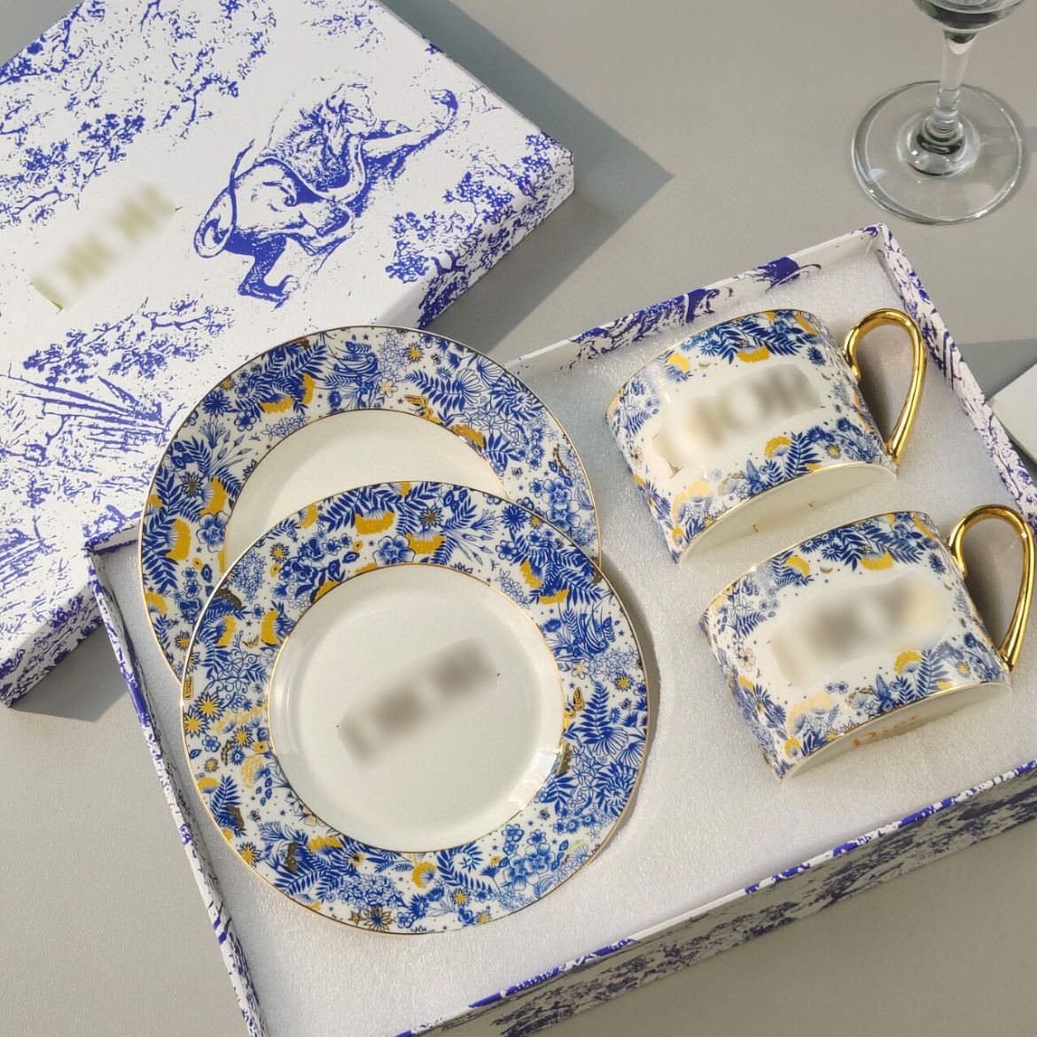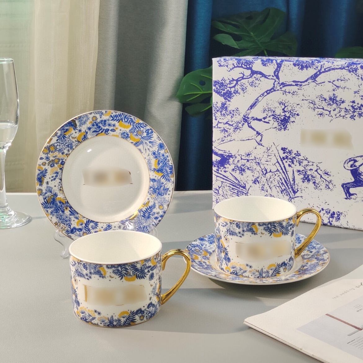 国境を越えたH家ファッションコーヒーカップセットヨーロッパ式骨磁器午後ティーセット紅茶カップコーヒー2杯2皿ギフトボックス