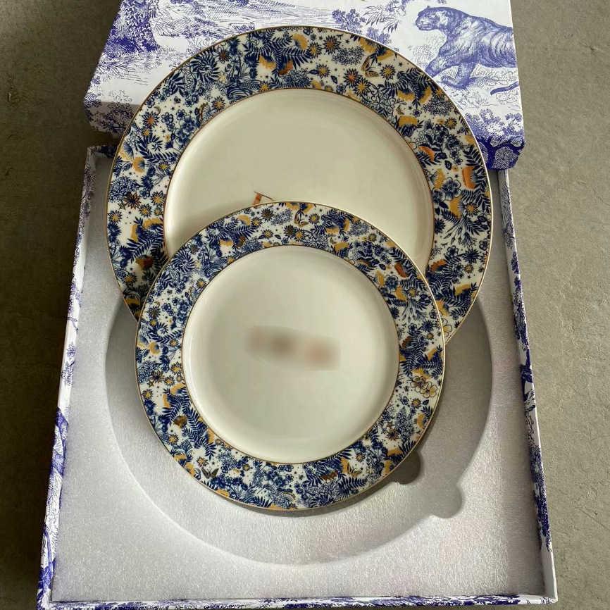 クロスボーダー卸売り迪家骨磁器洋食皿茹伊虎シリーズホテル洋食ステーキ皿食器スプーン食器