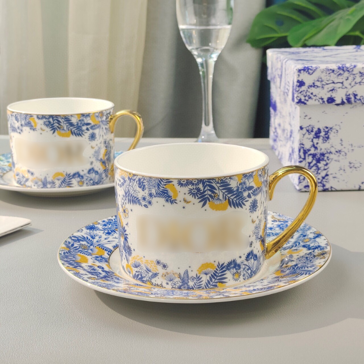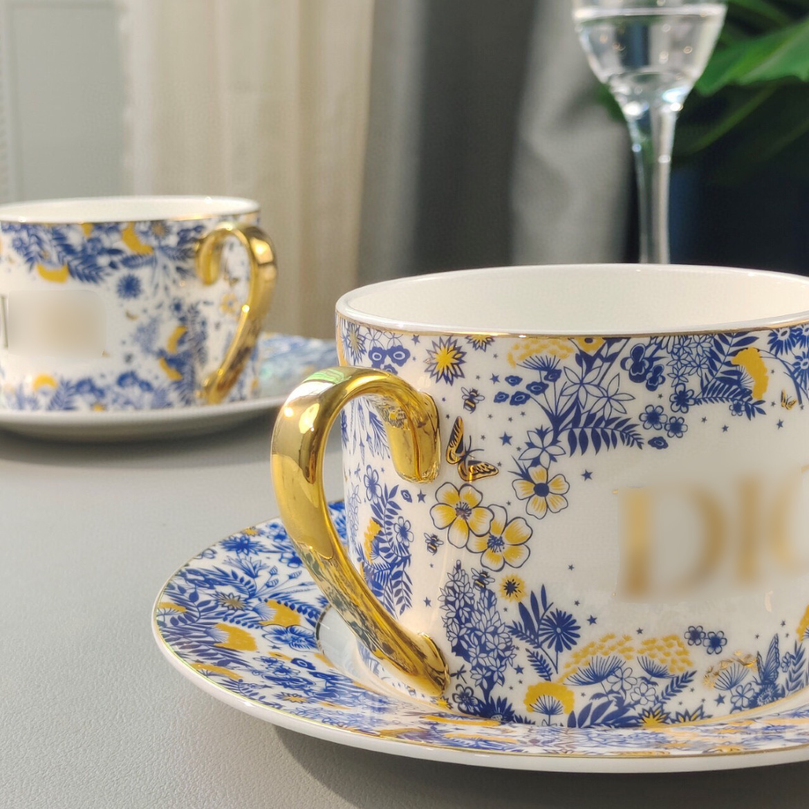 跨境迪家骨瓷咖啡杯海神系列排杯碟家用轻奢早餐杯闺蜜礼品杯批发