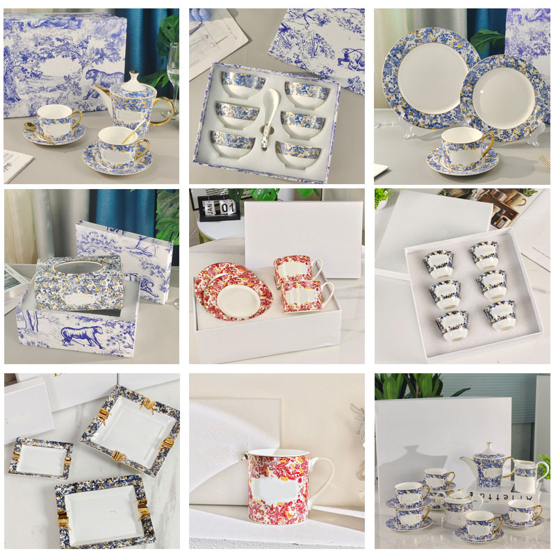 新型ロシアの花シリーズの骨磁器の食事皿の家庭用高級で豪華で洗練された皿のコーヒーカップ