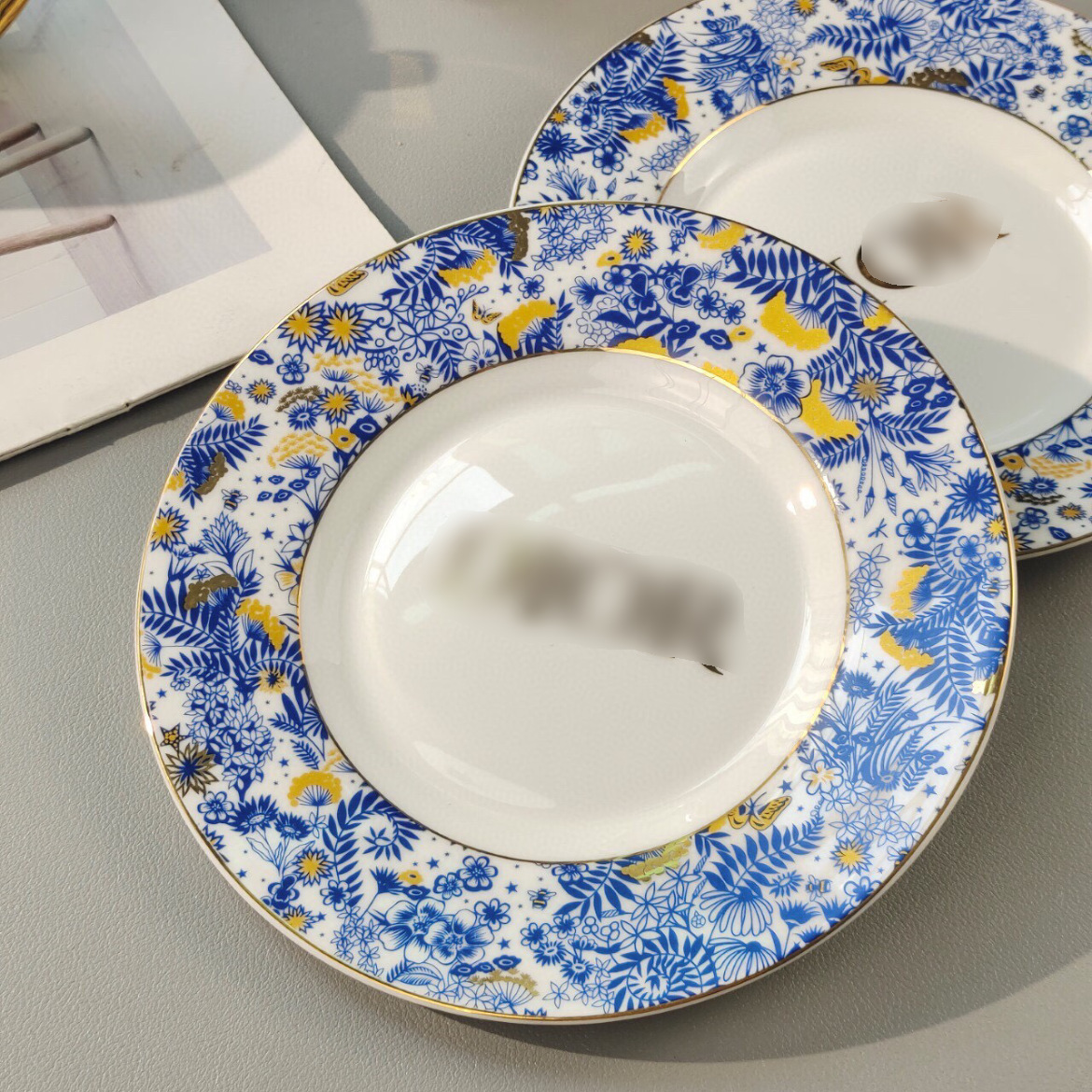国境を越えた迪家藍金シリーズ骨磁器コーヒーカップ皿セットヨーロッパ式軽豪華なお茶菓子皿10インチ平盤