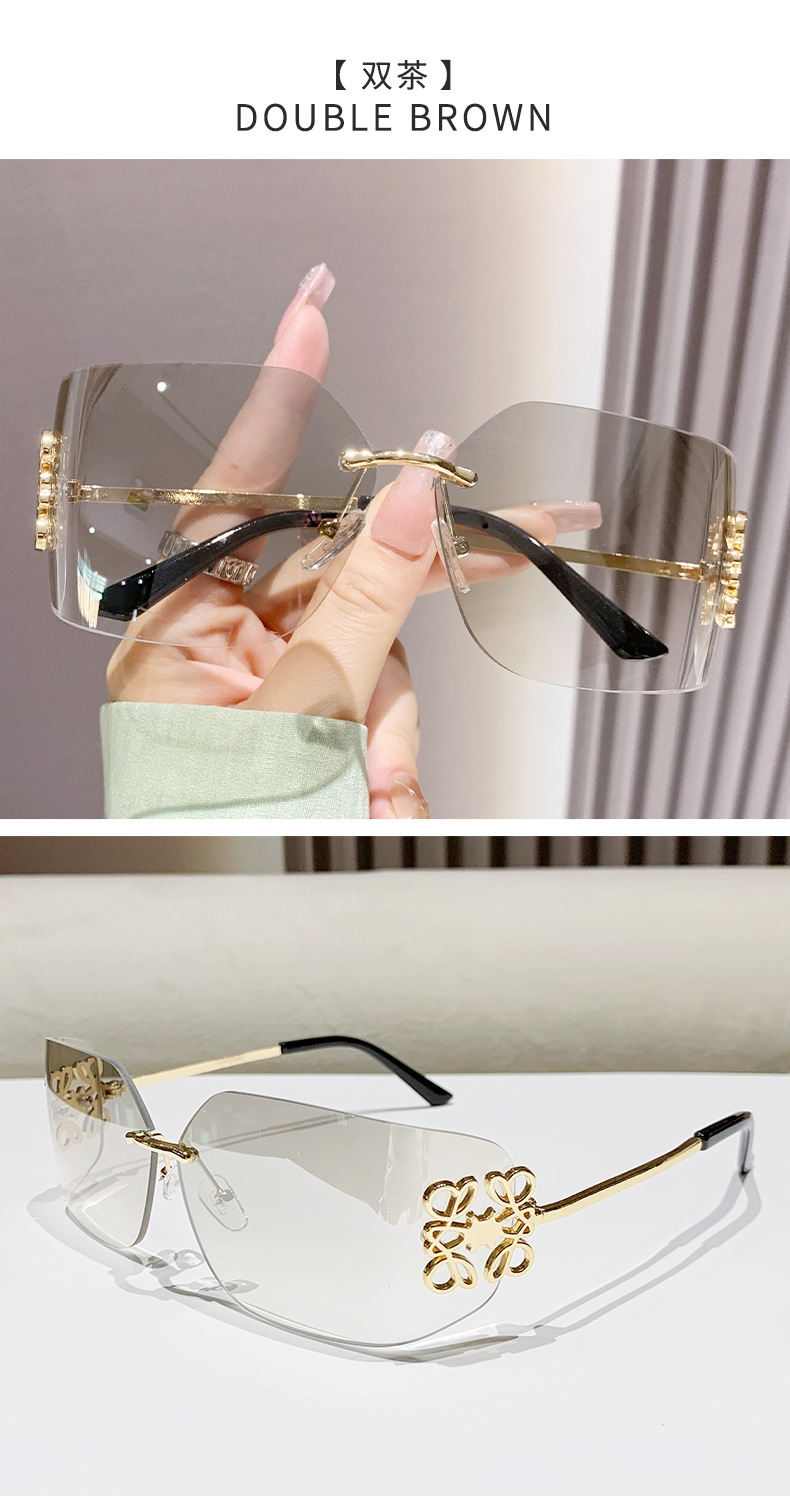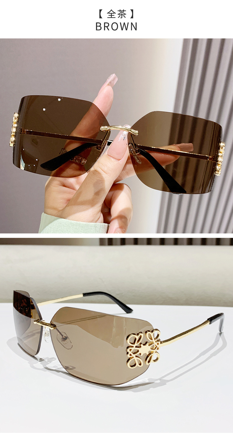 国境を越えた新型縁なしサングラス金属角形表裏文字Fサングラスメーカー直販ins