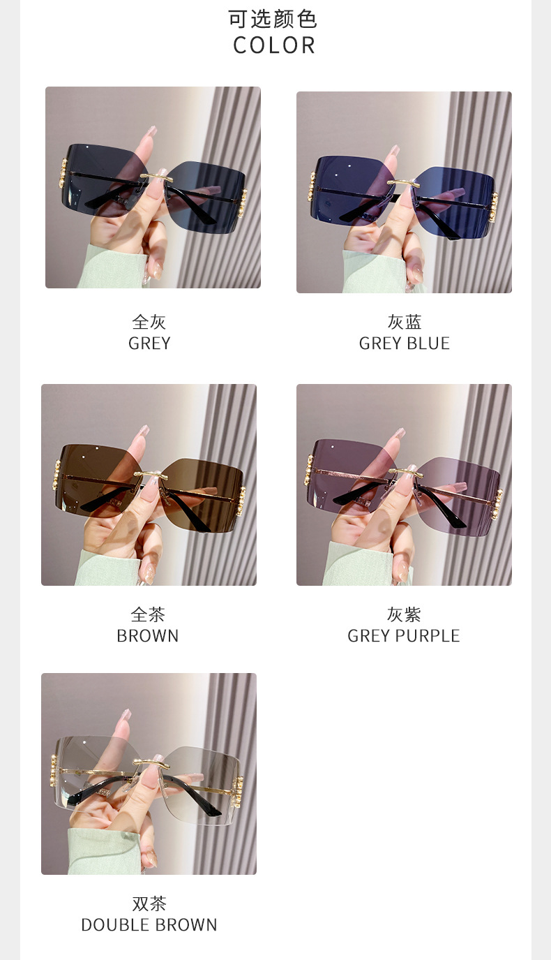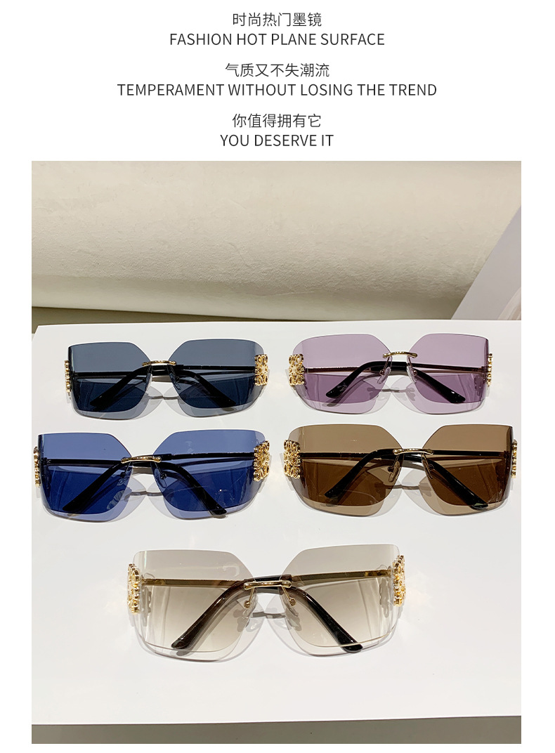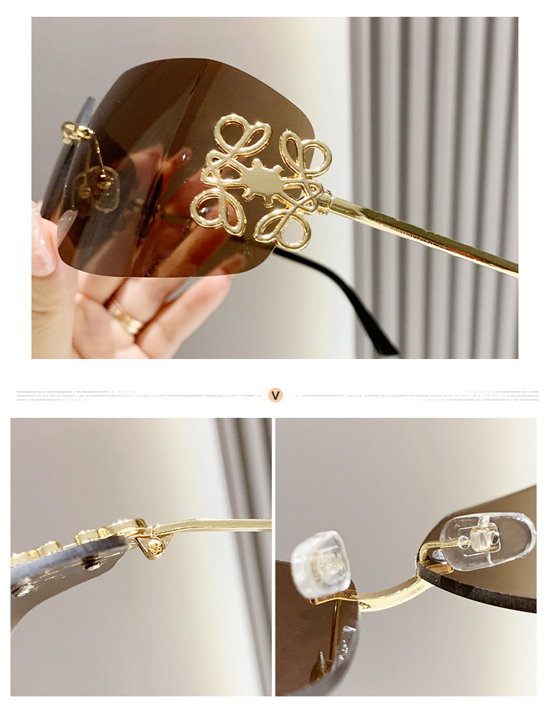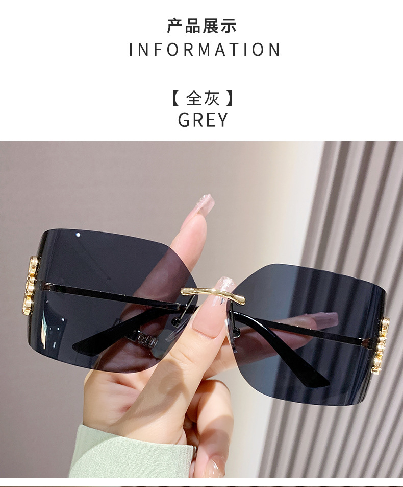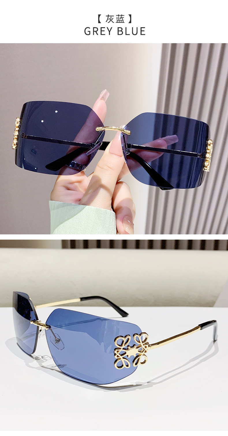 新商品の縁なしサングラスのアルファベットFのダイヤモンドの枠のファッションサングラスの欧米の潮流は縁を切って小さい枠を切って日焼け止めの鏡を飾ります。