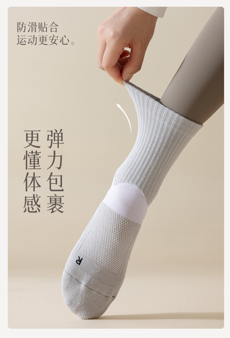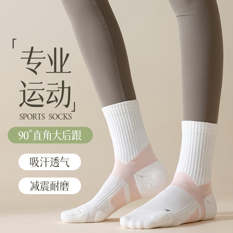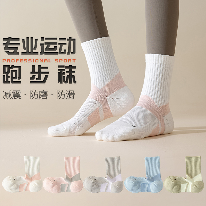 专业跑步运动袜女春秋款羽毛球袜跳绳骑行瑜伽秋冬防臭中筒袜诸暨