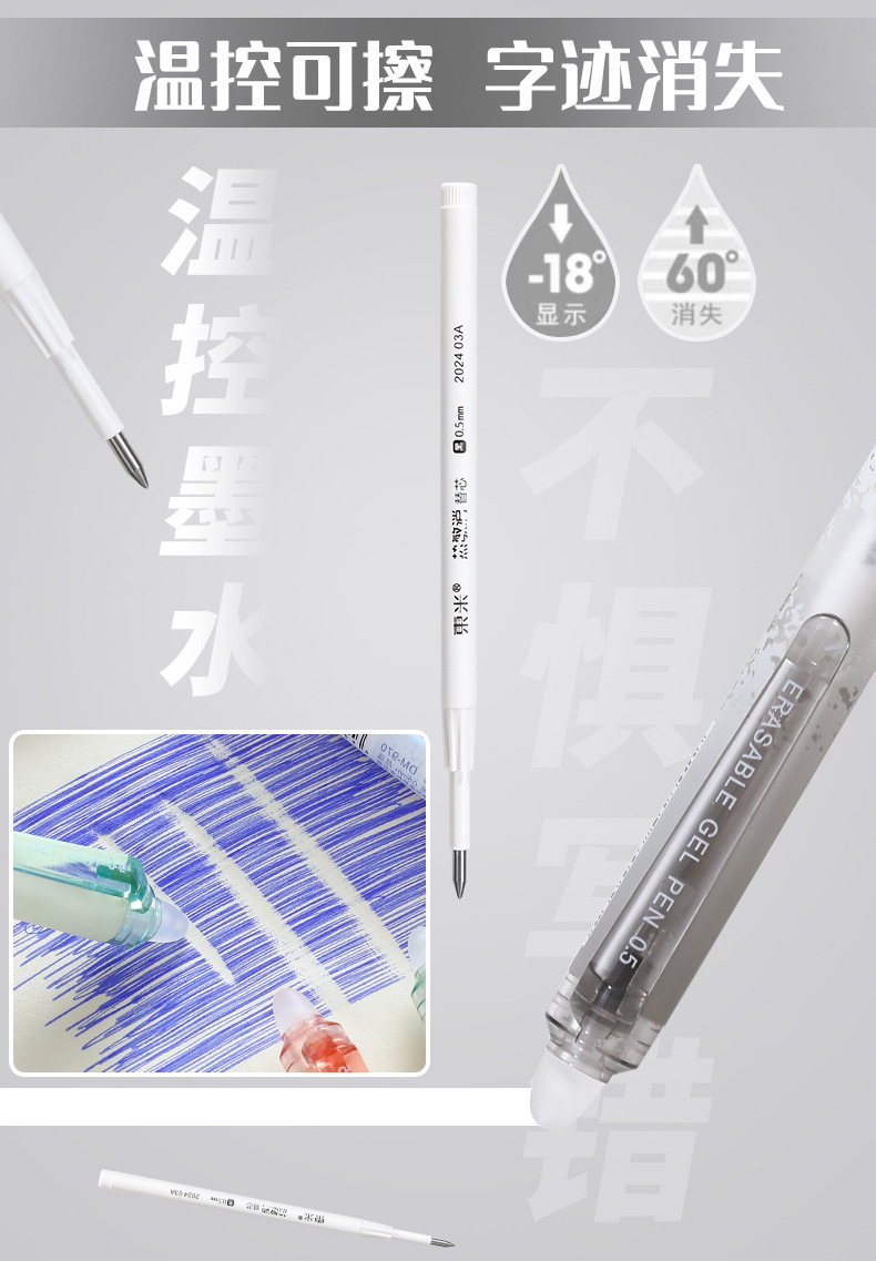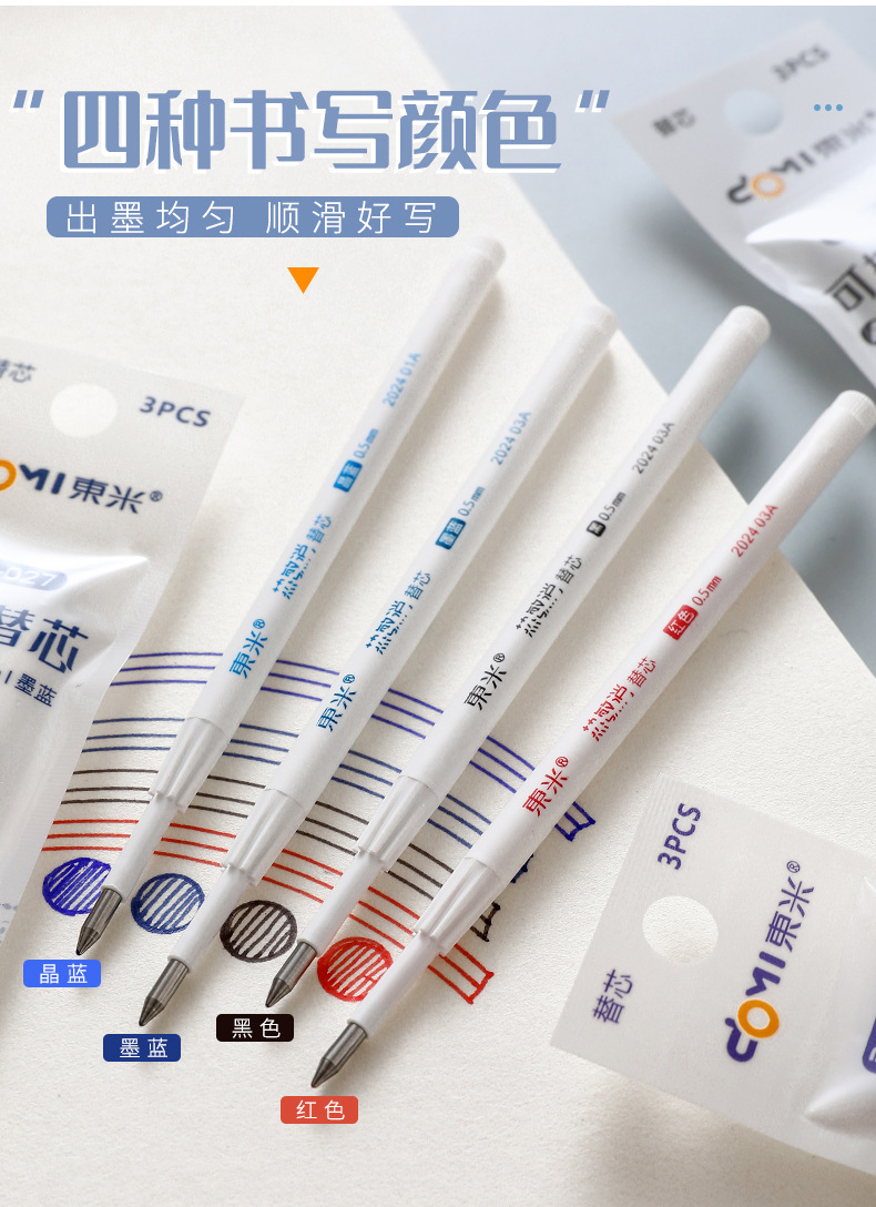 東米027感熱消押し交換芯はペン交換芯の環境保護子弾頭0.5mm黒赤結晶青墨青を拭くことができる