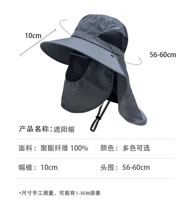 アウトドアマスクの首保護日焼け止め帽男女夏の大きなつば紫外線防止太陽帽釣り帽登山自転車帽