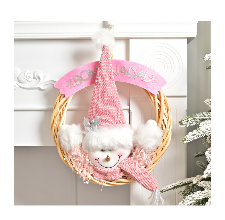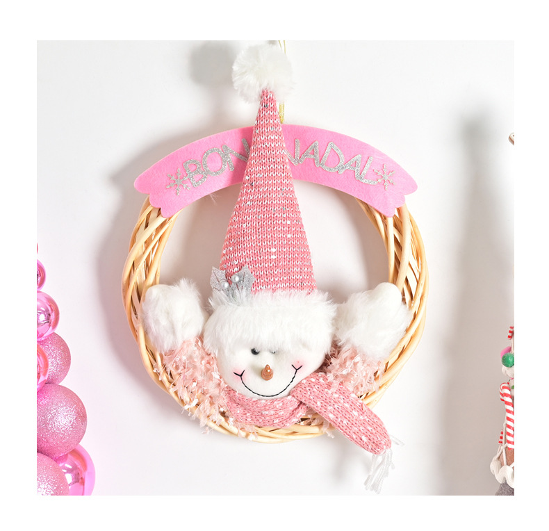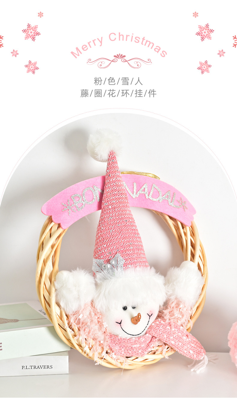 新しいクリスマスピンクかわいい雪だるま藤輪装飾プレゼント壁装飾飾り花輪