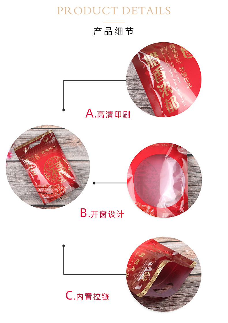 ソーセージ包装袋透明プラスチック自立袋密封ジッパー自封袋ギフト袋特産袋2斤500グラム