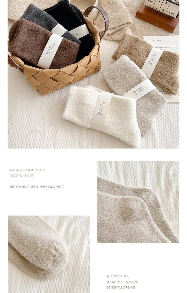 75グラム ± カシミヤ靴下女性の中筒靴下秋冬とベルベットの厚い保温毛輪靴下通気冬の女性のストッキング