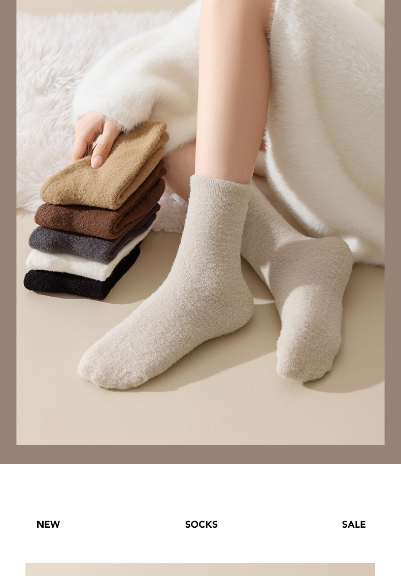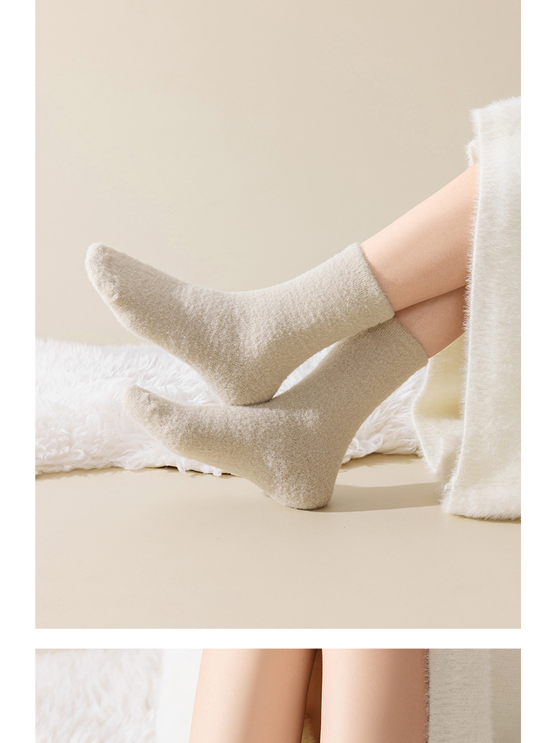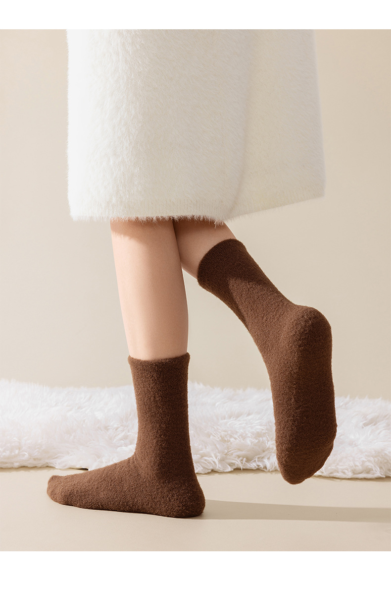 サンゴの毛の靴下の女性の中筒の靴下の秋冬のベルベットの厚い保温の睡眠の靴下の女性の冬の松の口の月子の靴下