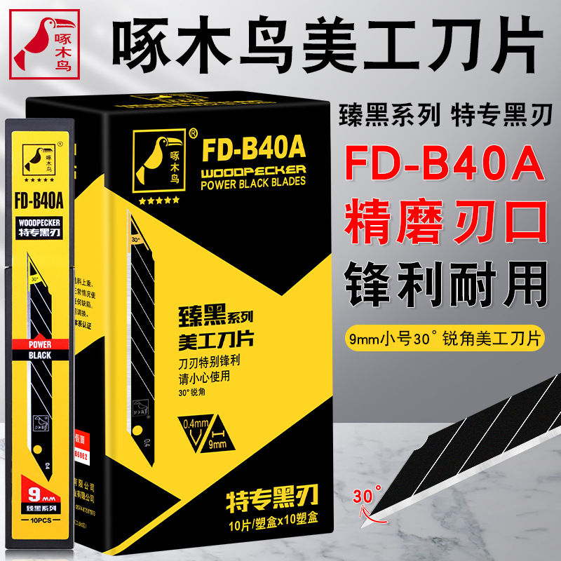 キツツキ美工ブレード30度尖角全黒9mmトランペットブレードトリミング彫刻フィルムブレードFD-B40A