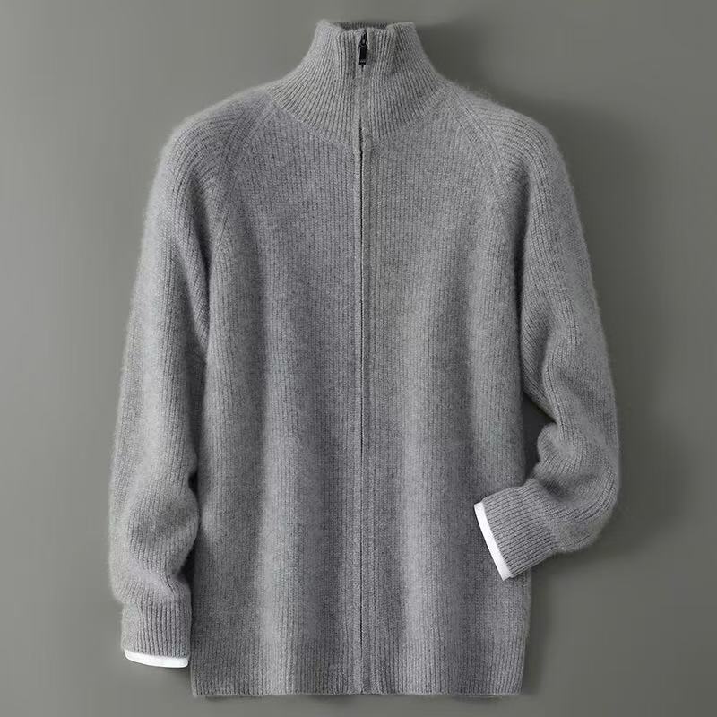 2025秋冬新款100%纯羊毛开衫男半高领拉链宽松休闲时尚毛衣厚外套