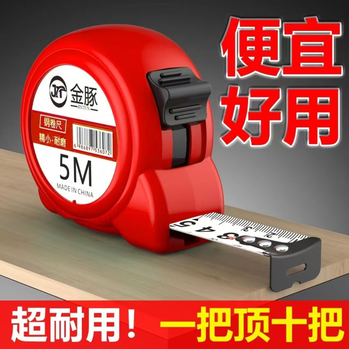 恭喜发财鸿运当头耐磨自锁家用5米高精度7.5米加宽10加厚盒尺