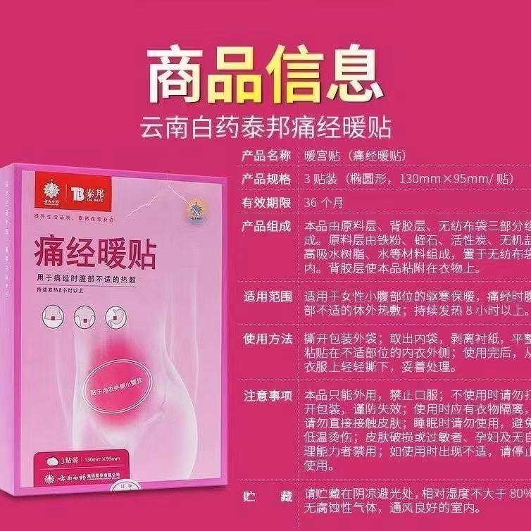 雲南白薬痛経暖貼3貼/箱泰邦痛経貼自己発熱暖貼暖宝