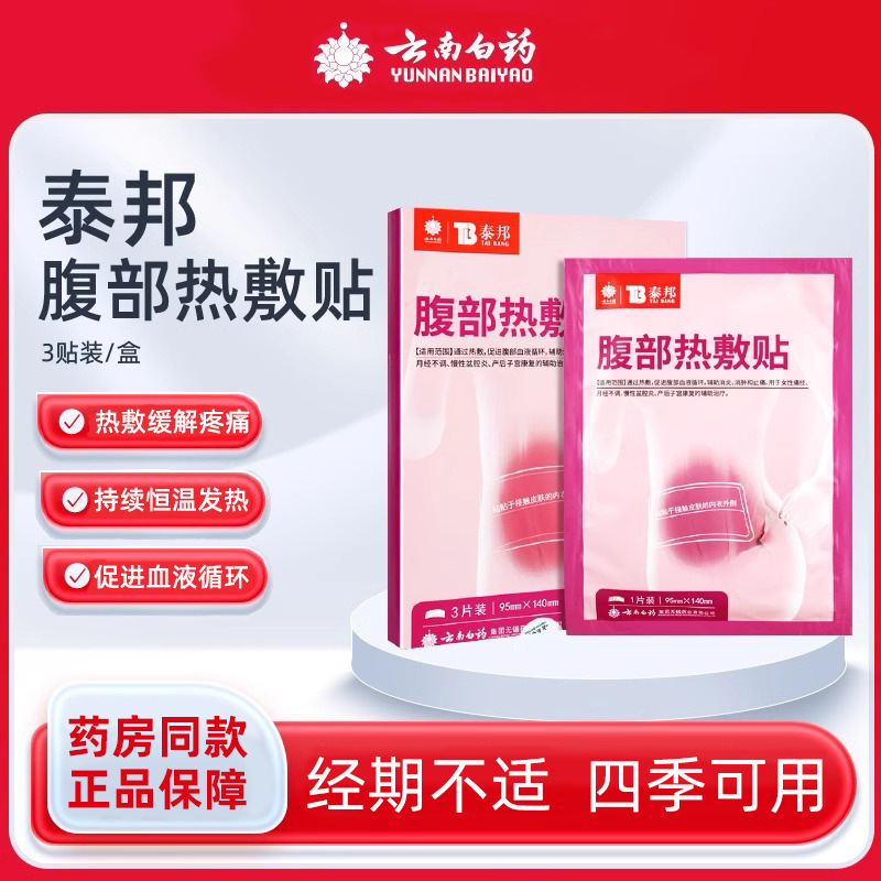云南白药泰邦腹部热敷贴痛经暖贴自发热暖宝宝3片/盒暖身贴