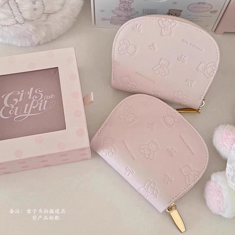 新しいインカードホルダー、クマのエンボス財布、コンパクトな収納、かわいい、複数のカードスロット、かわいい質感、スーパーコイン