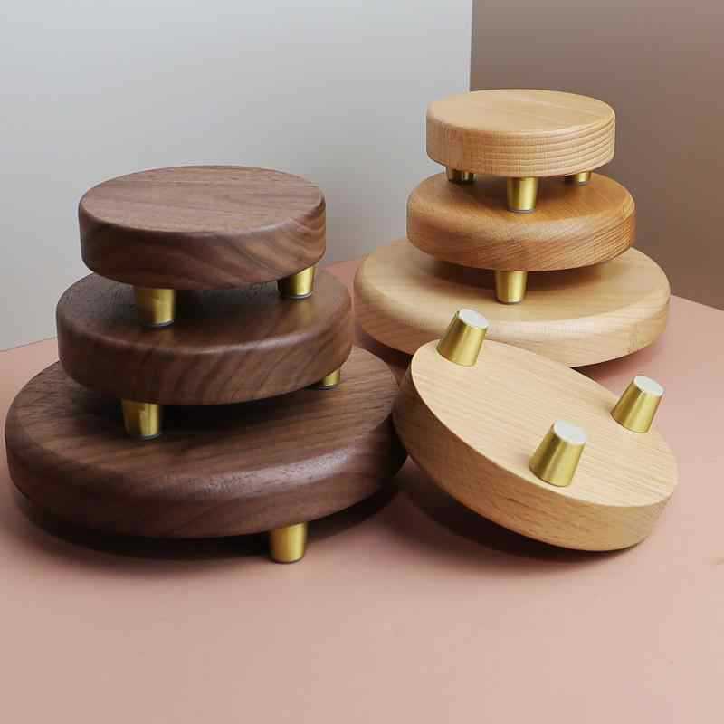 円形北米黒胡桃木ケヤキ装飾人形造景ミニチュア実木ベース展示台