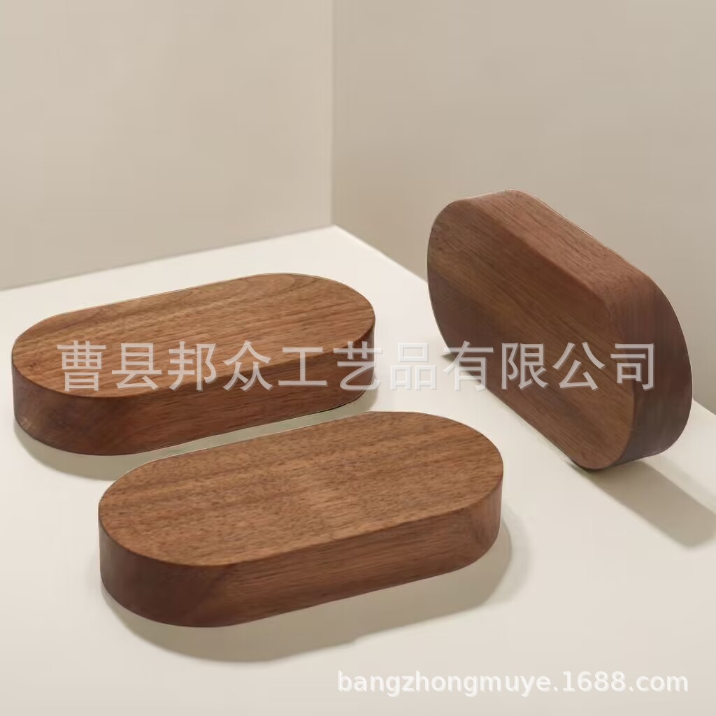 楕円のデスクトップの置物の実木DIYの台の胡桃木の車載の台の木製の展示棚の木の托の台の人形