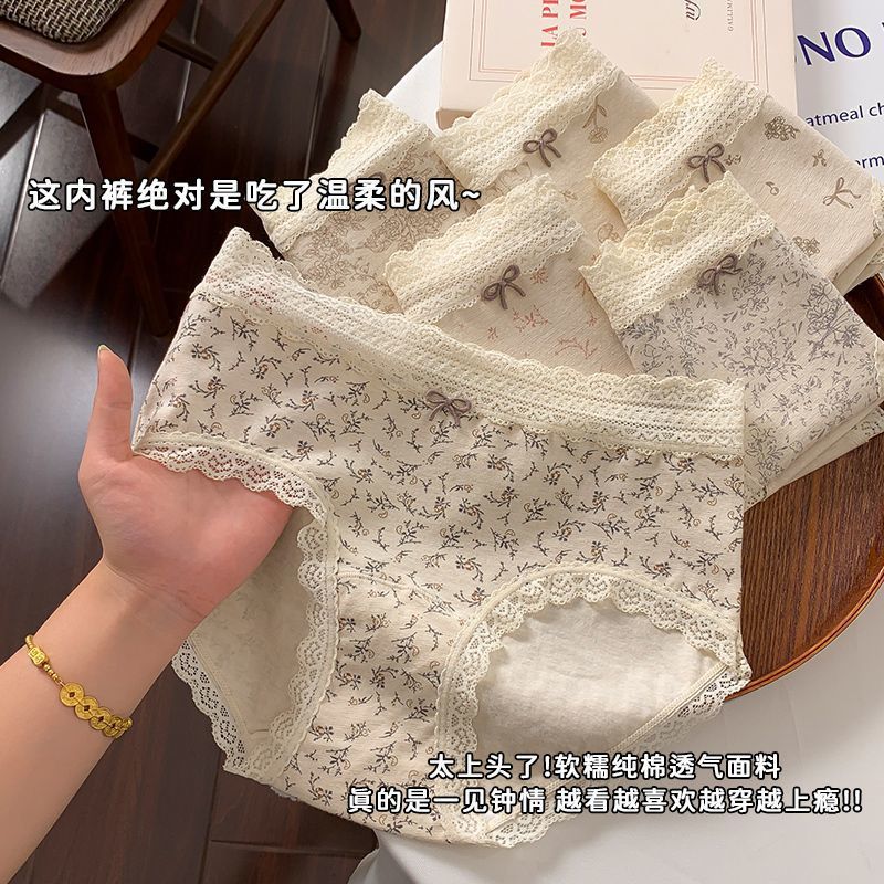 复古碎花10A少女软糯蕾丝内裤女生纯棉抑菌加长裆透气女士三角裤