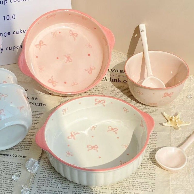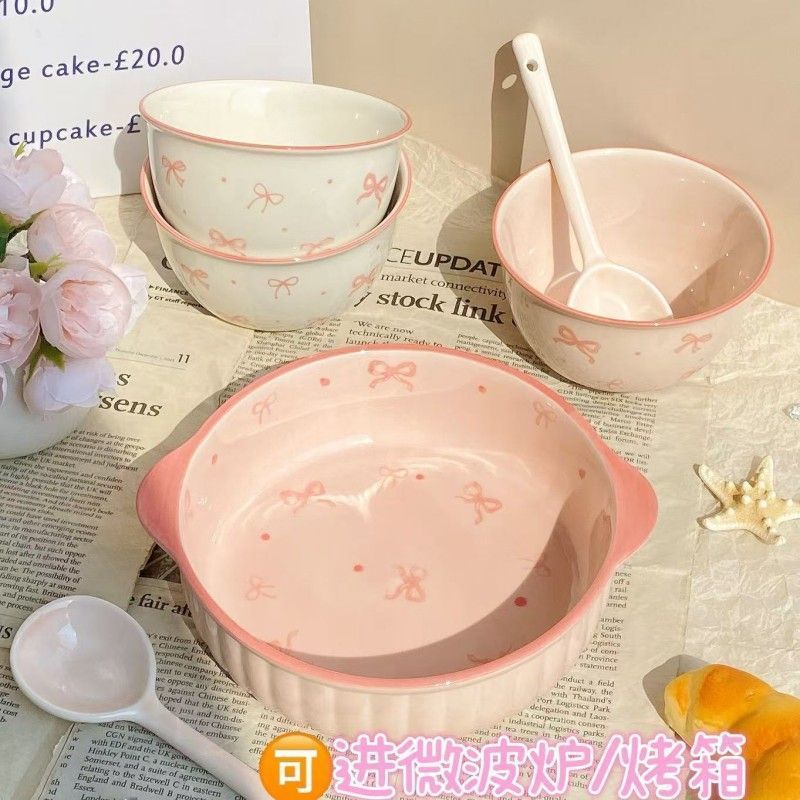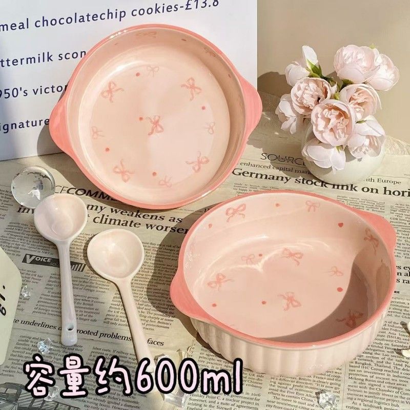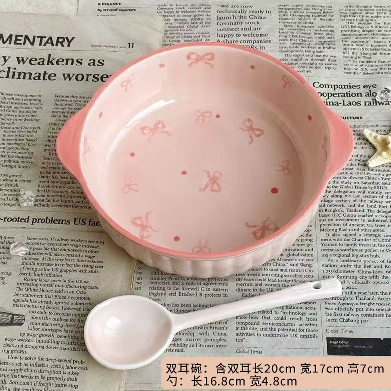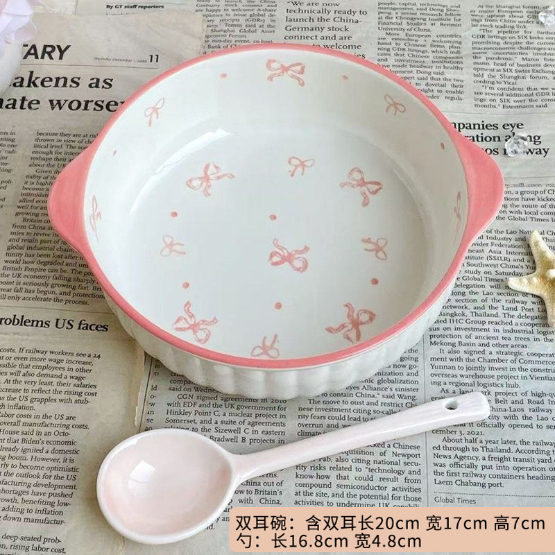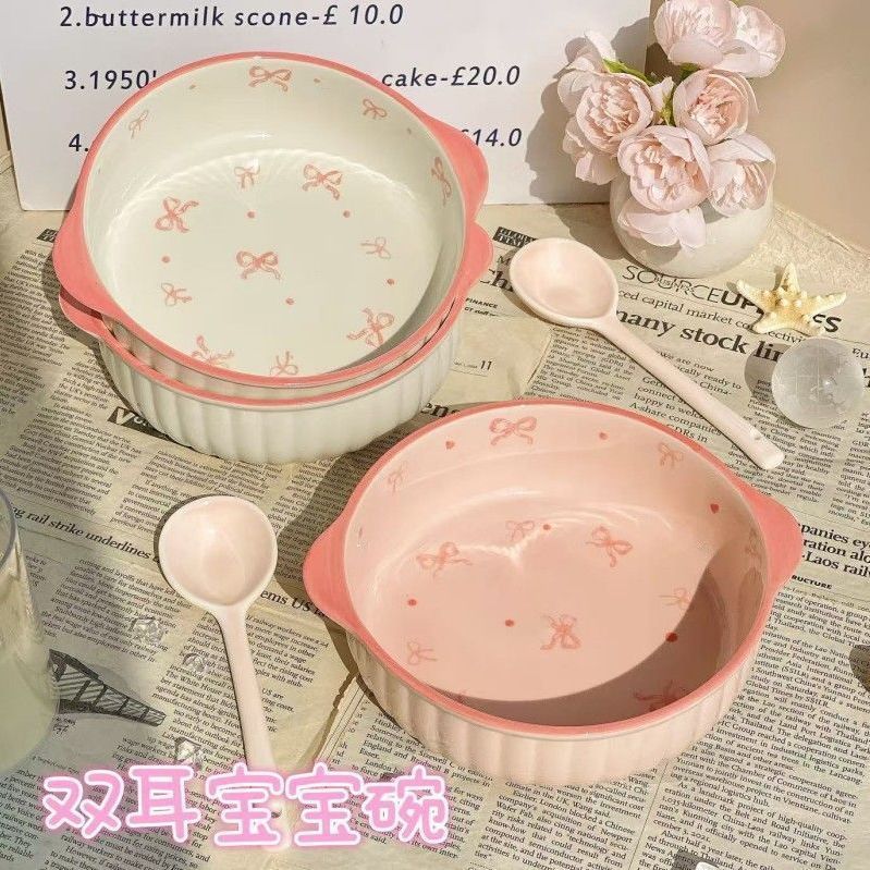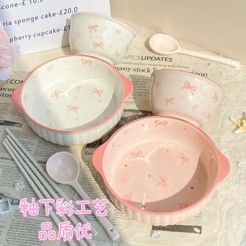 シンプルins少女蝶結び大容量双耳泡麺碗大サイズスープ碗寮学生個人専用碗