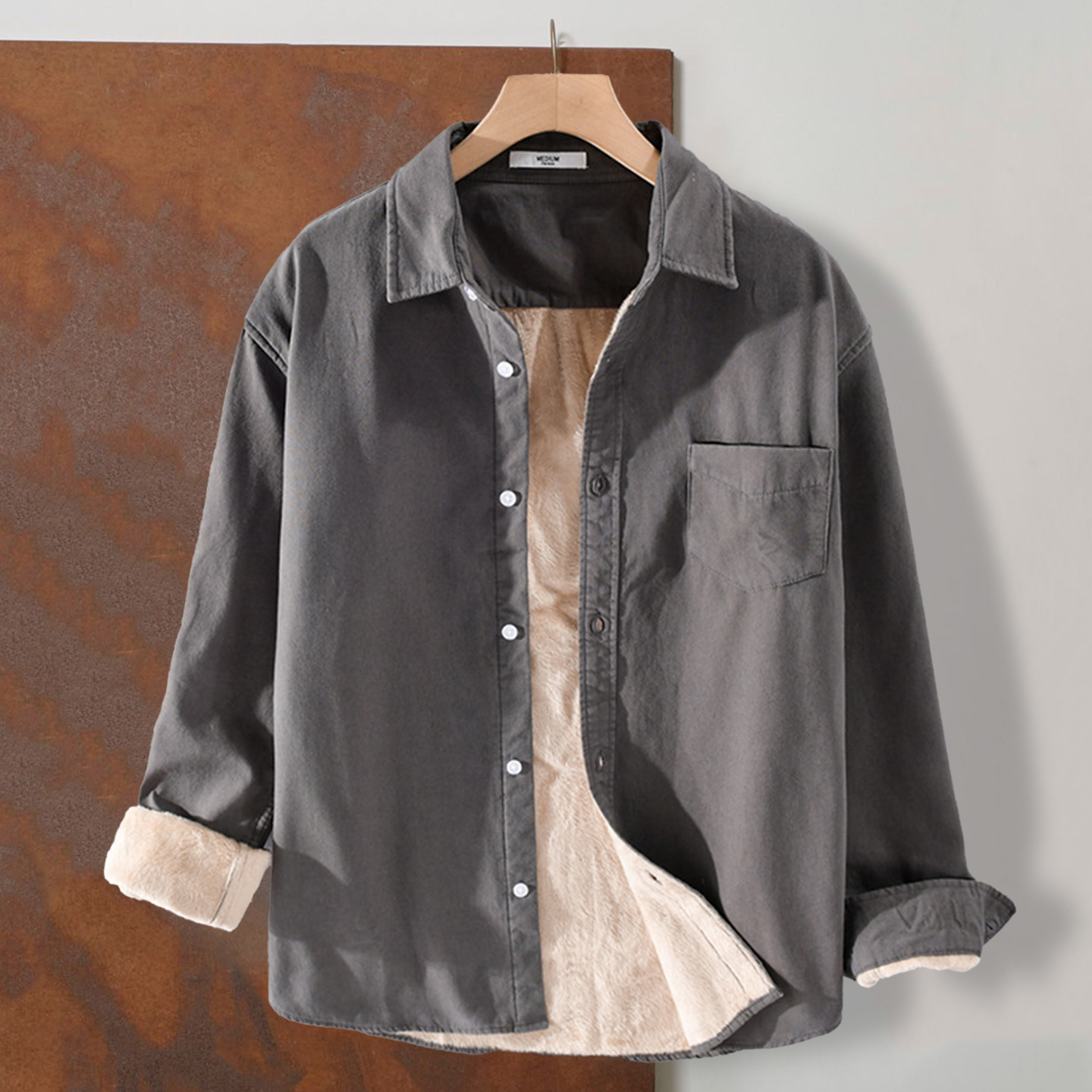 9855男士加厚加绒长袖衬衫冬季保暖御寒内搭外穿简约休闲青年衬衣