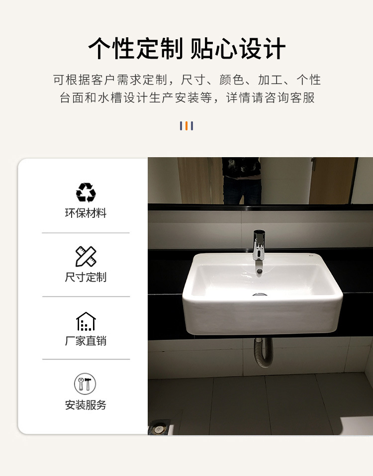 埋め込み型スプライシングハイ&ローダブル洗面台ホテルショッピングモール公共ダブル一体型洗面台コレーン人造石