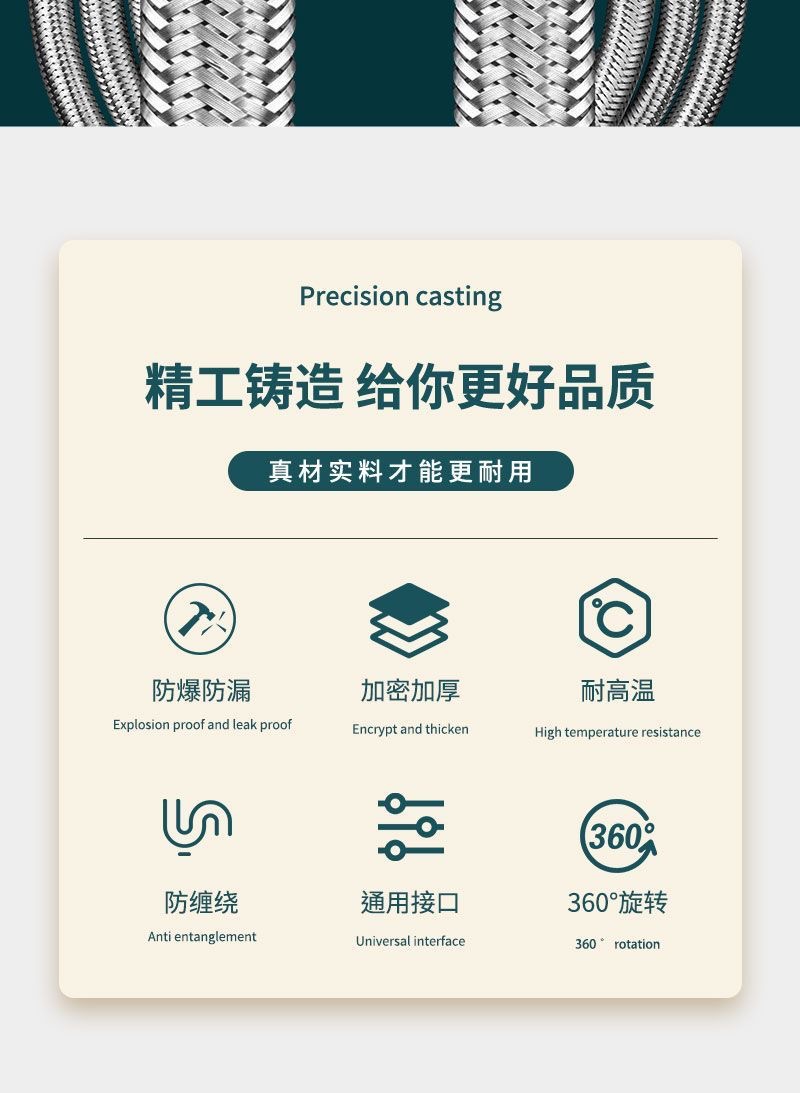 304ステンレス鋼線編組ホース4分割蛇口給湯器金属高圧防爆トイレ給水管を厚くする