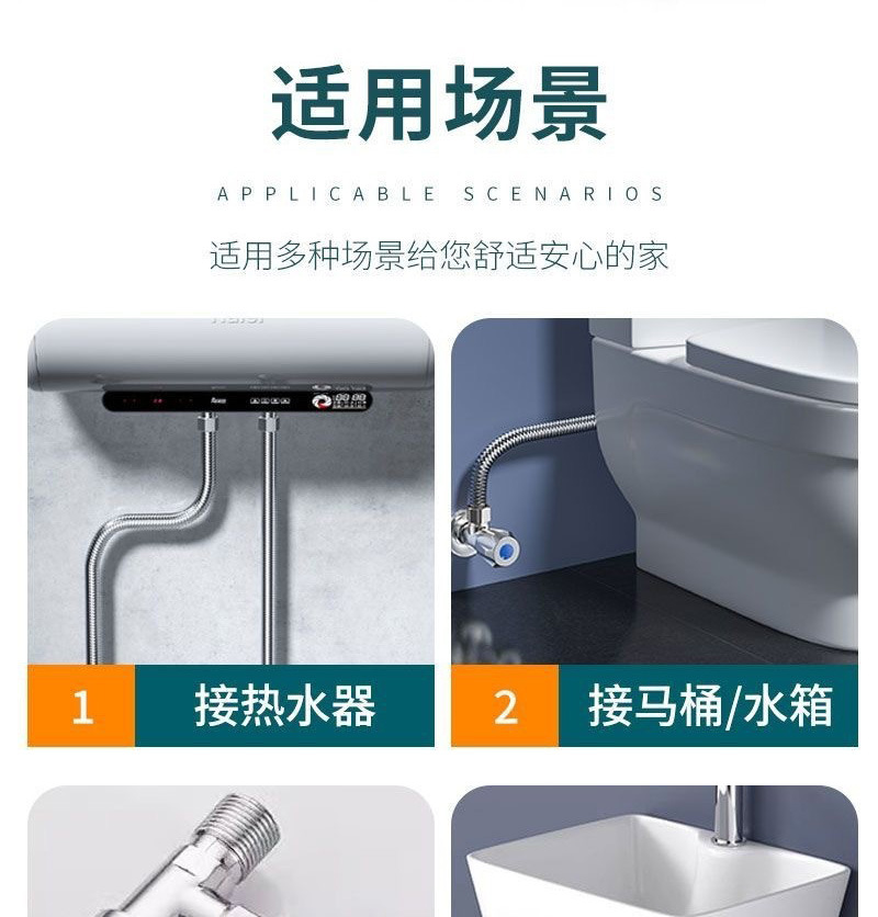 进水管软管钢丝4分冷热进水软管加长热水器不锈钢编织金属软管