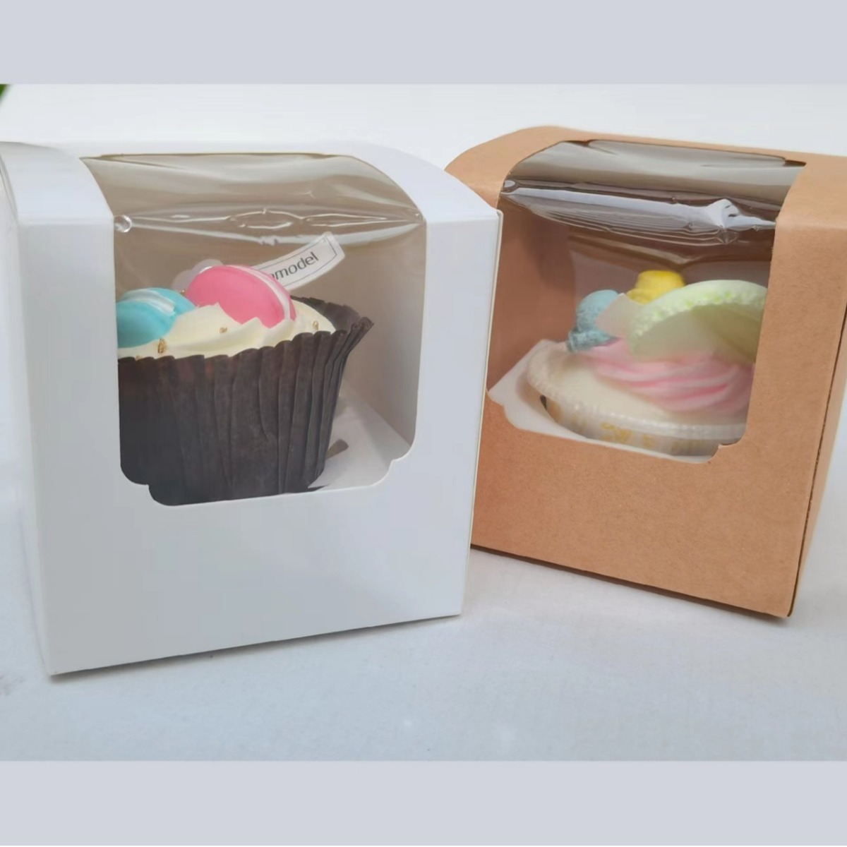 透明な窓を開けた1粒のマフィン箱紙コップケーキのケーキ箱に甘いものを持ってきて、箱に入れてください