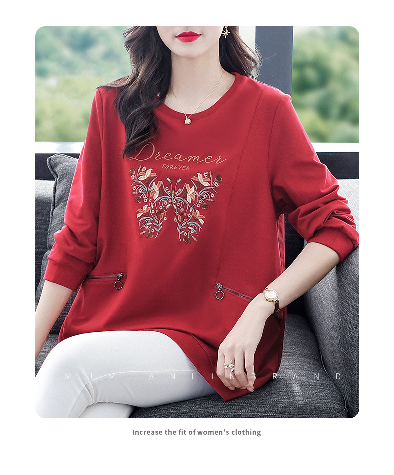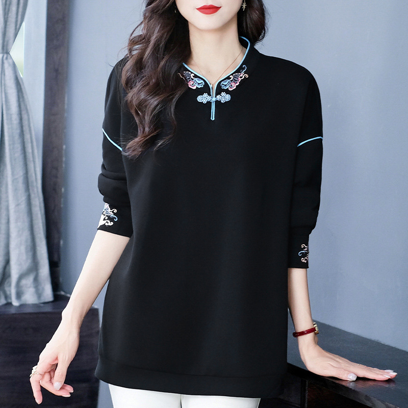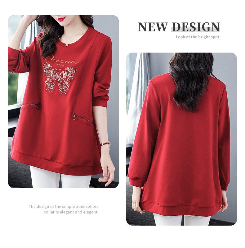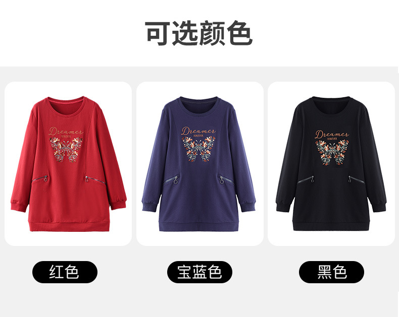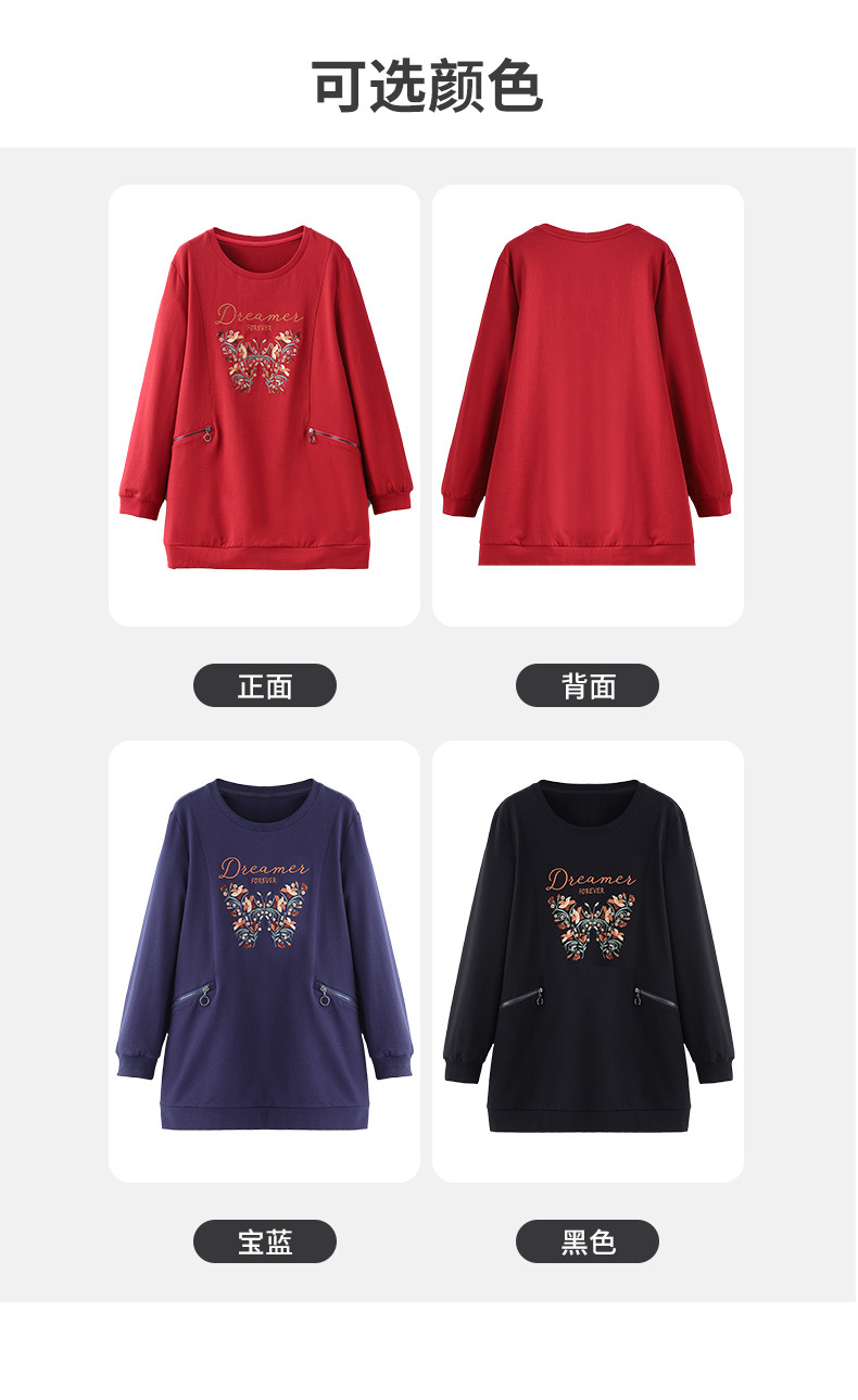 秋冬の新型の国風の刺繍のファスナーのポケットの洋気の大きいサイズのゆったりしている長袖のパーカーの上着の老年のお母さんの婦人服