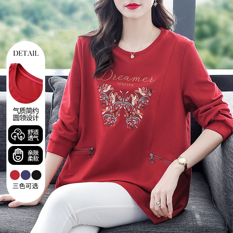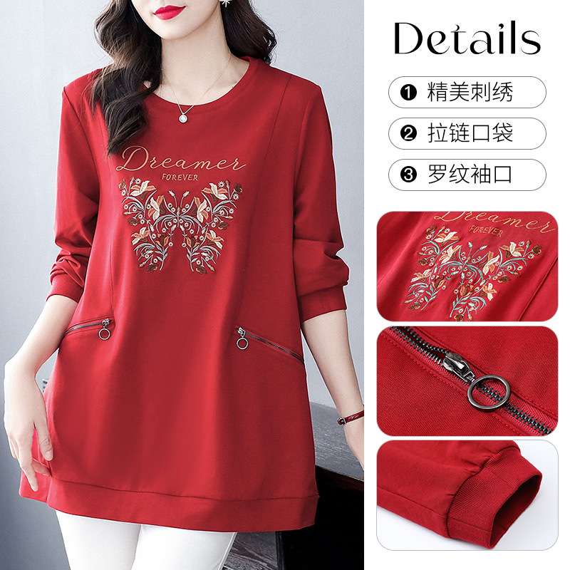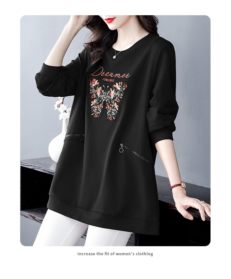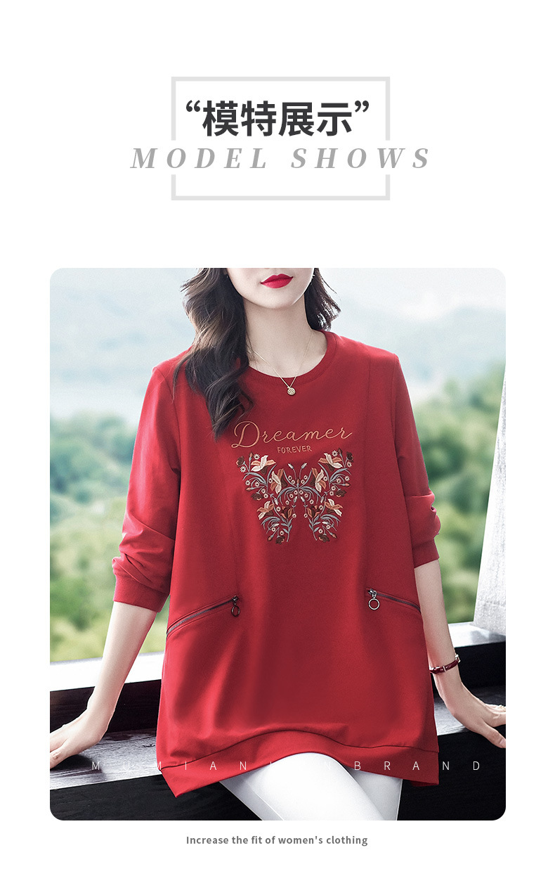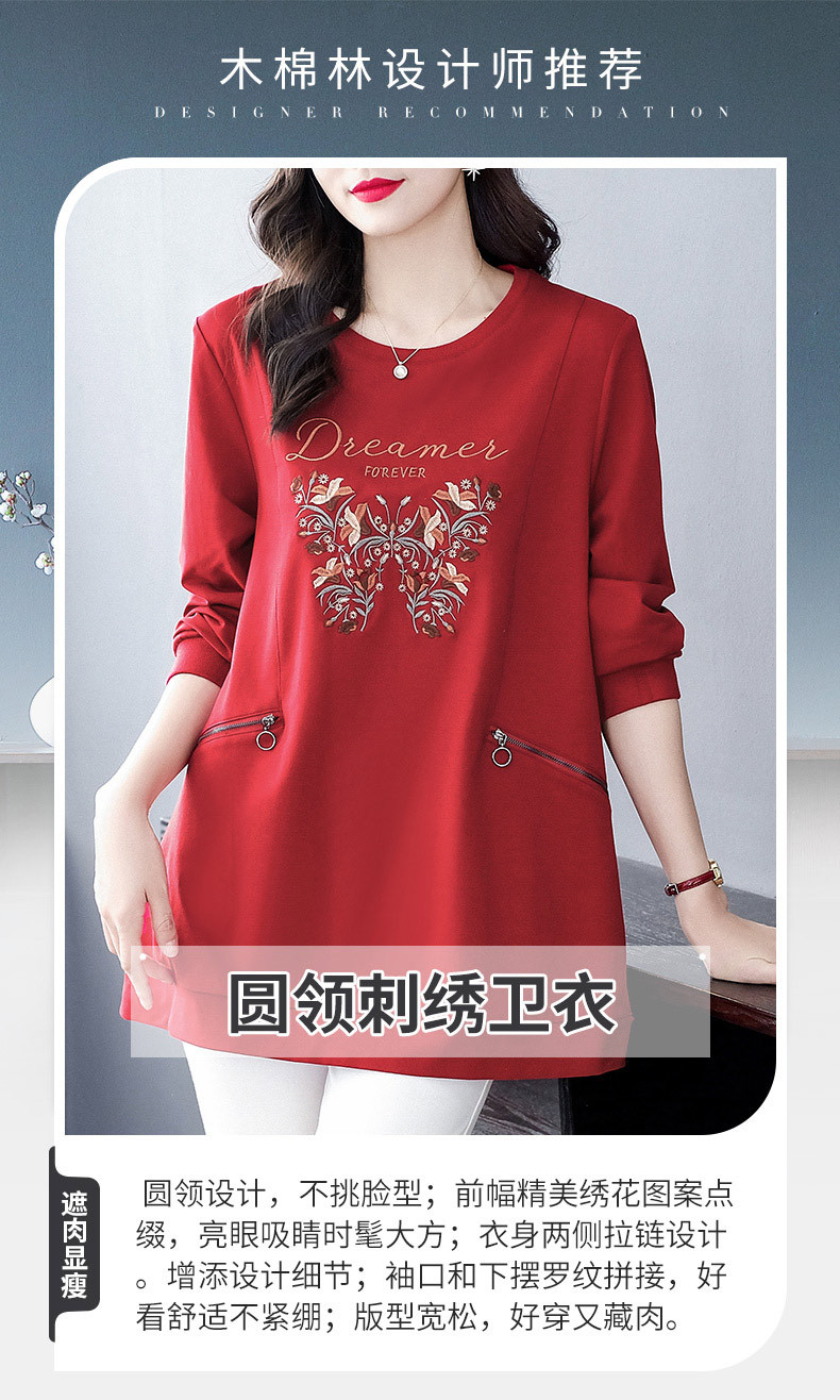 秋冬の新型の国風の刺繍のファスナーのポケットの洋気の大きいサイズのゆったりしている長袖のパーカーの上着の老年のお母さんの婦人服