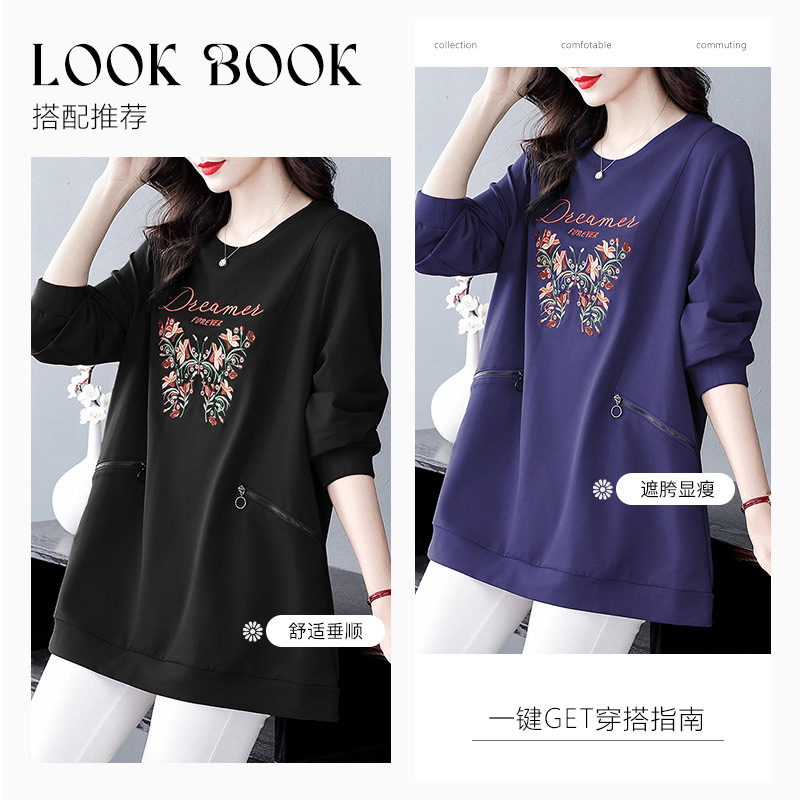 秋冬圆领休闲百搭卫衣女250斤胖mm加肥加大宽松显瘦上衣外套
