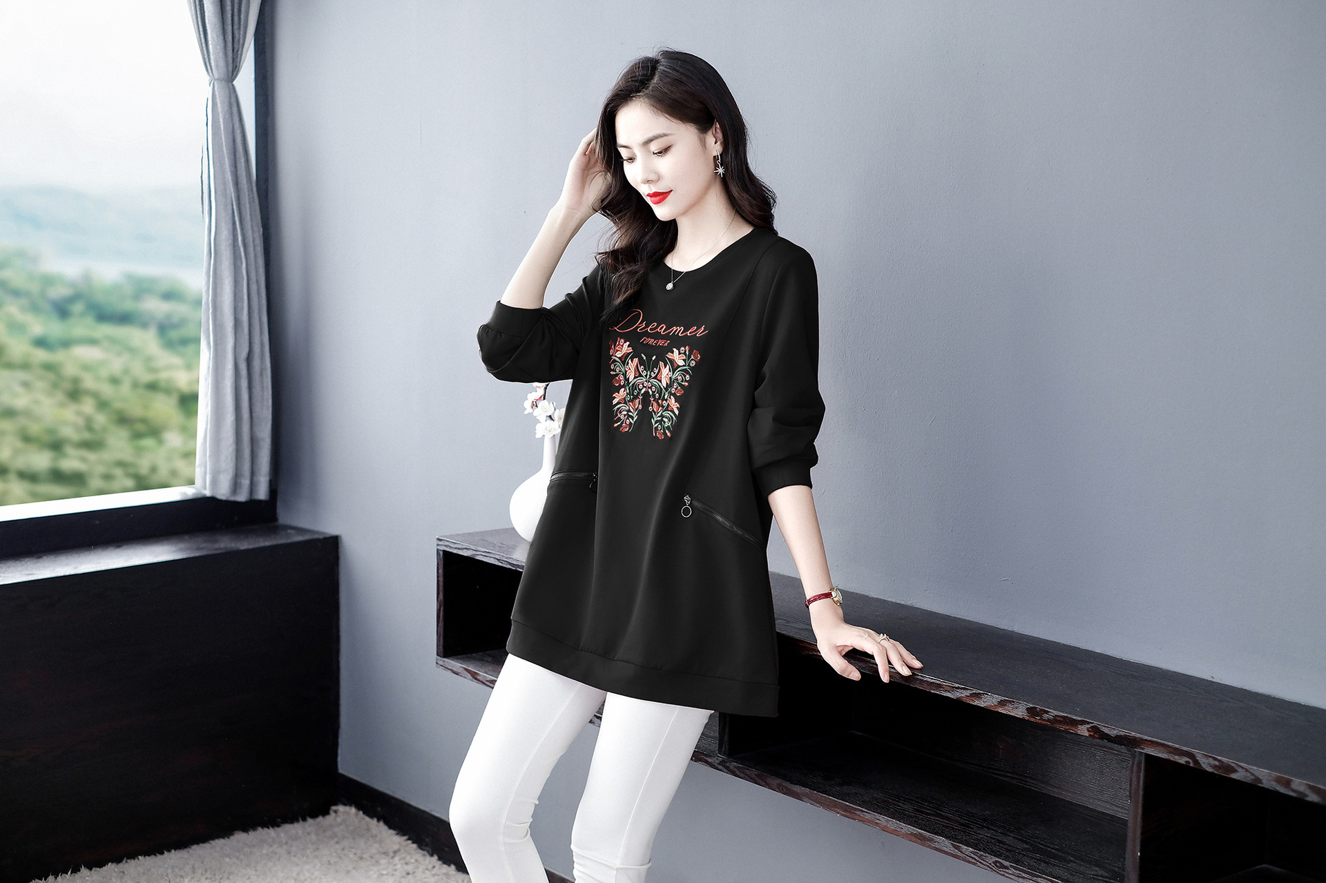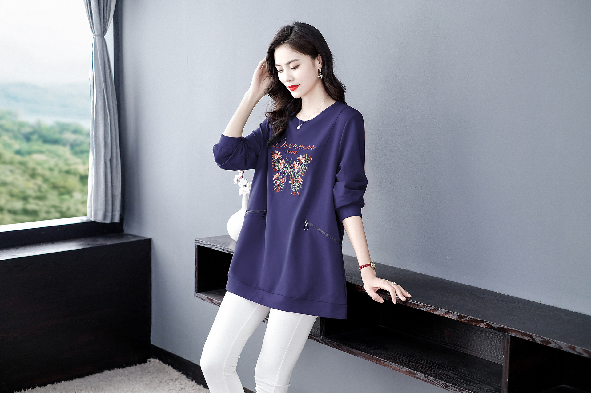 フランスの品質は軽くて豪華な専門店の気質は秋冬に合わせて、ゆったりしていて、痩せています。