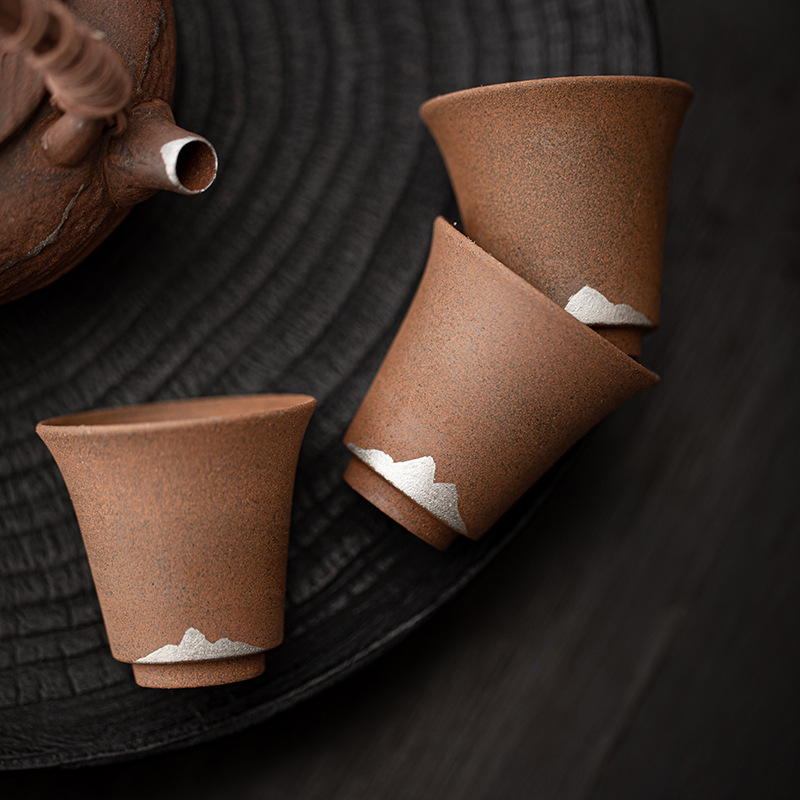 空寂斎老岩泥遠山杯日本式粗陶茶杯工夫茶具品茗杯単杯トランペット主人杯