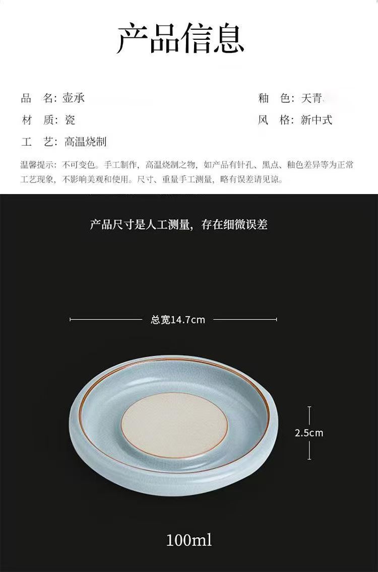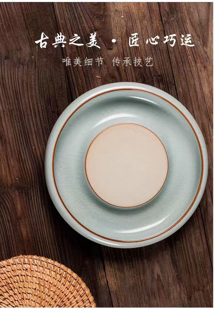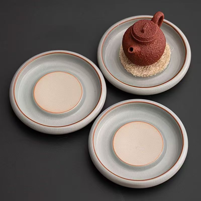 天青汝窯壺承復古茶承乾泡台壺托陶磁器工夫茶器養壺蓋碗底托