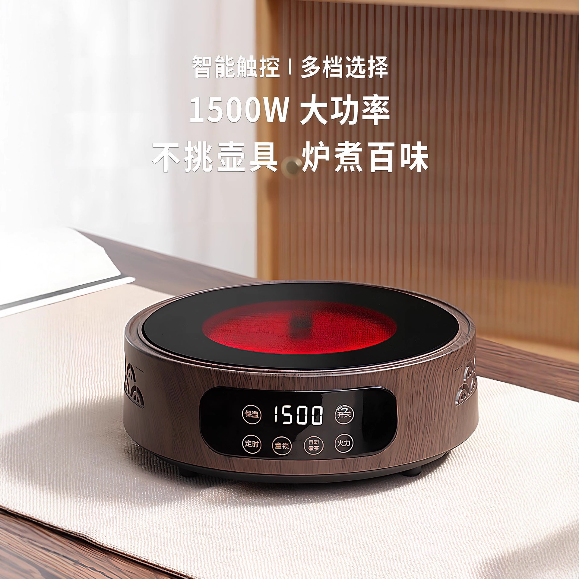 囲炉煮茶高ホウ素シリコン泡ティーポット紫砂日本式耐熱ガラス煮ティーポット蒸煮双用胡桃木