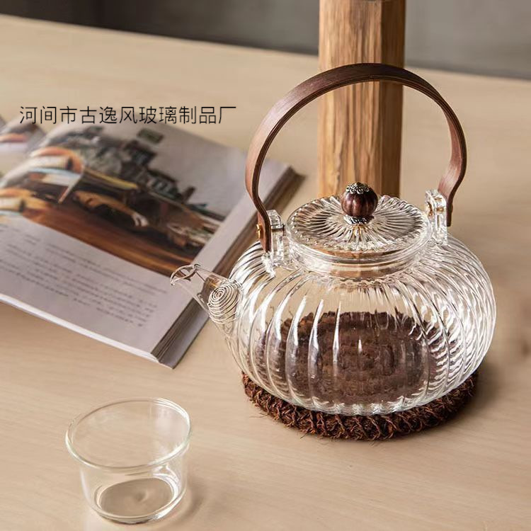 囲炉煮茶メーカー卸売り提梁壺ガラス急須煮急須耐熱湯泡茶養生壺プーアル白