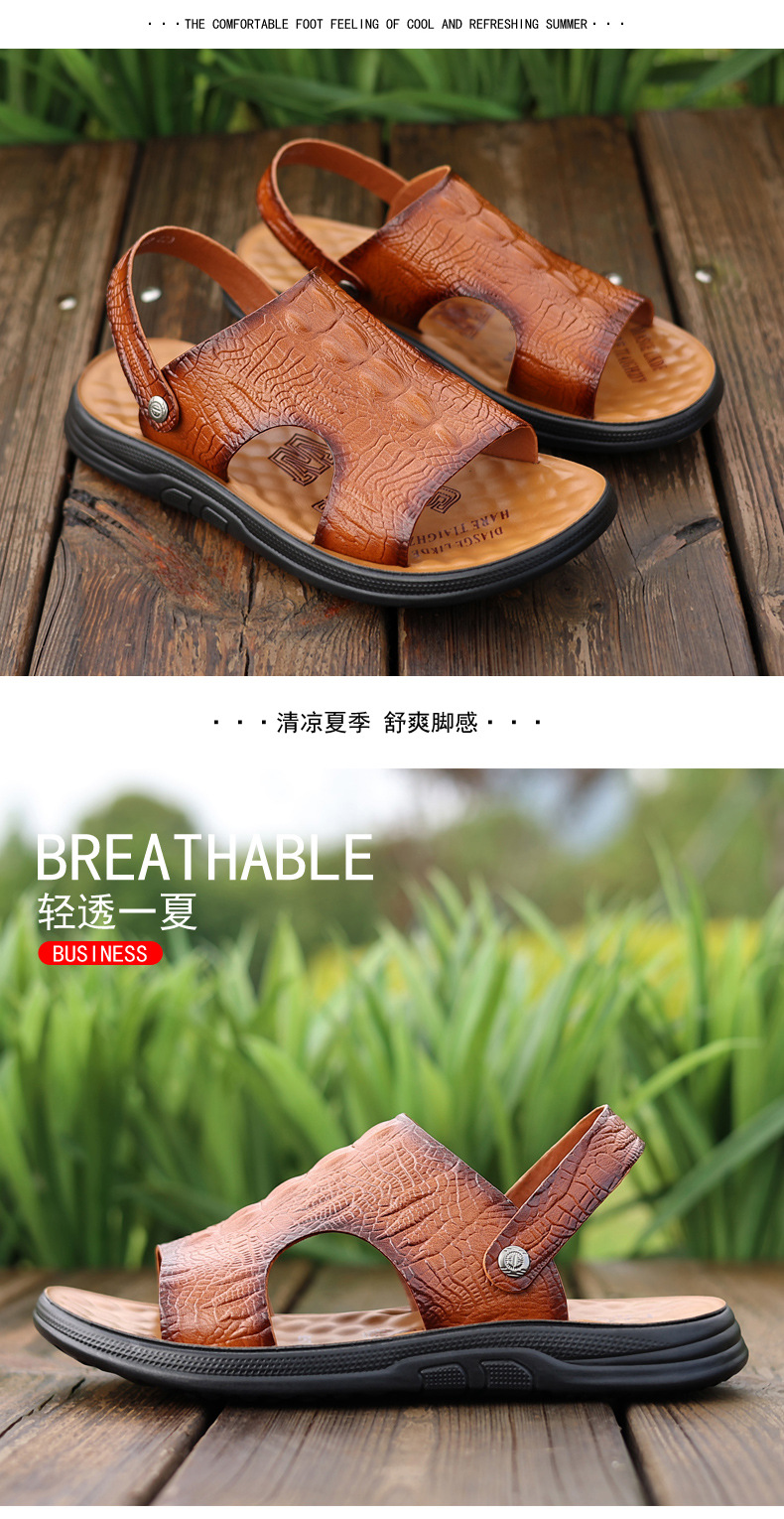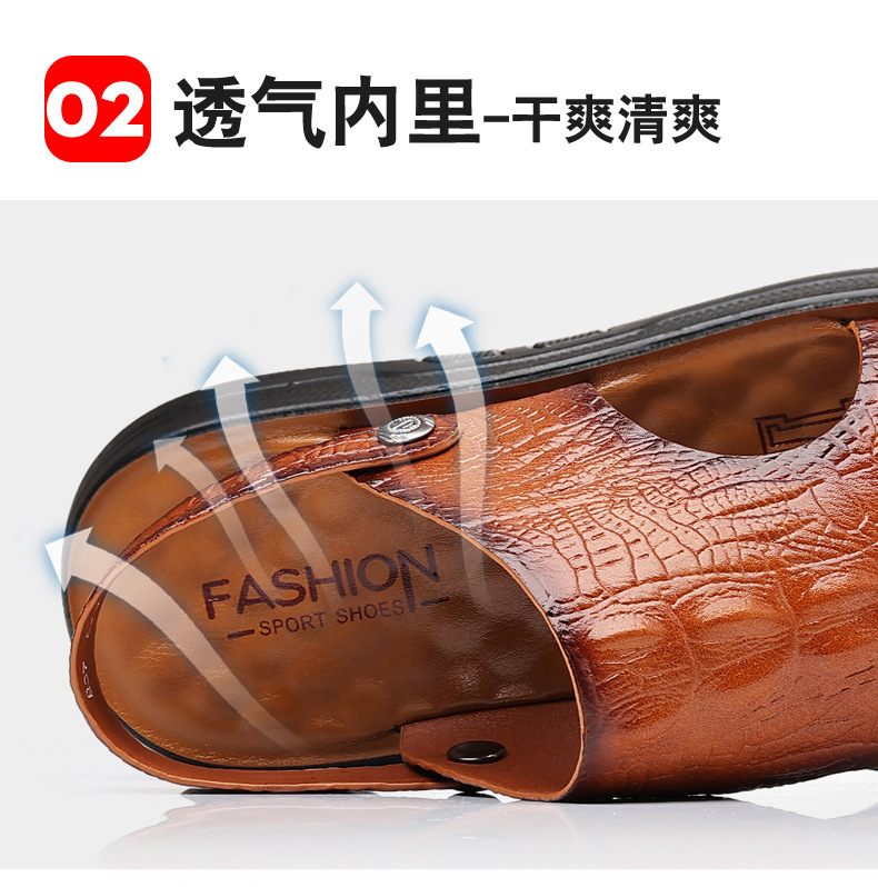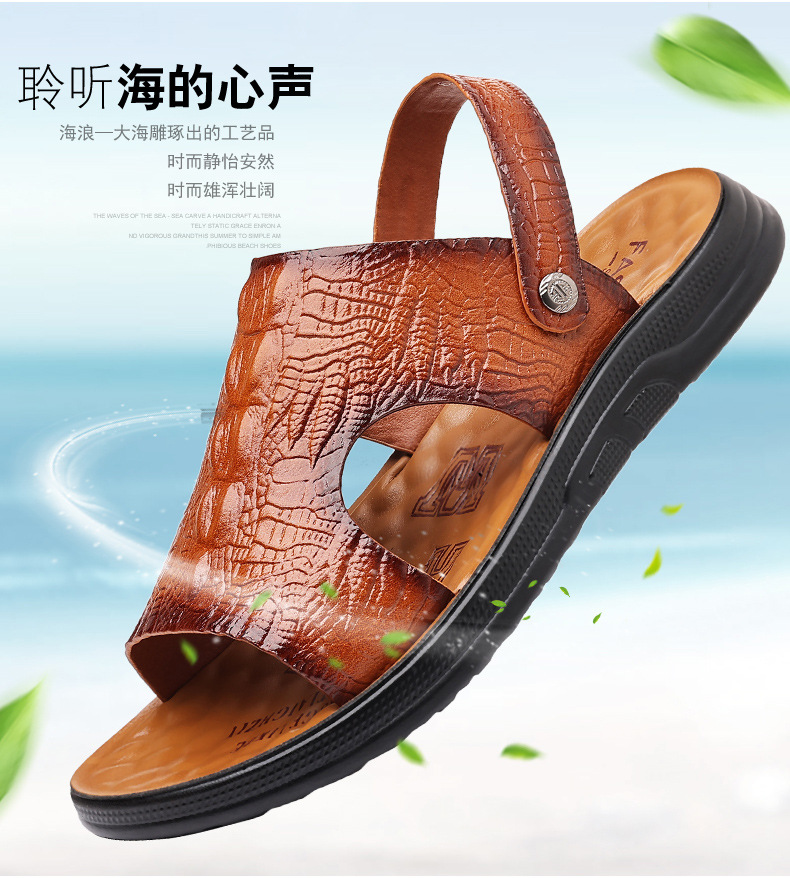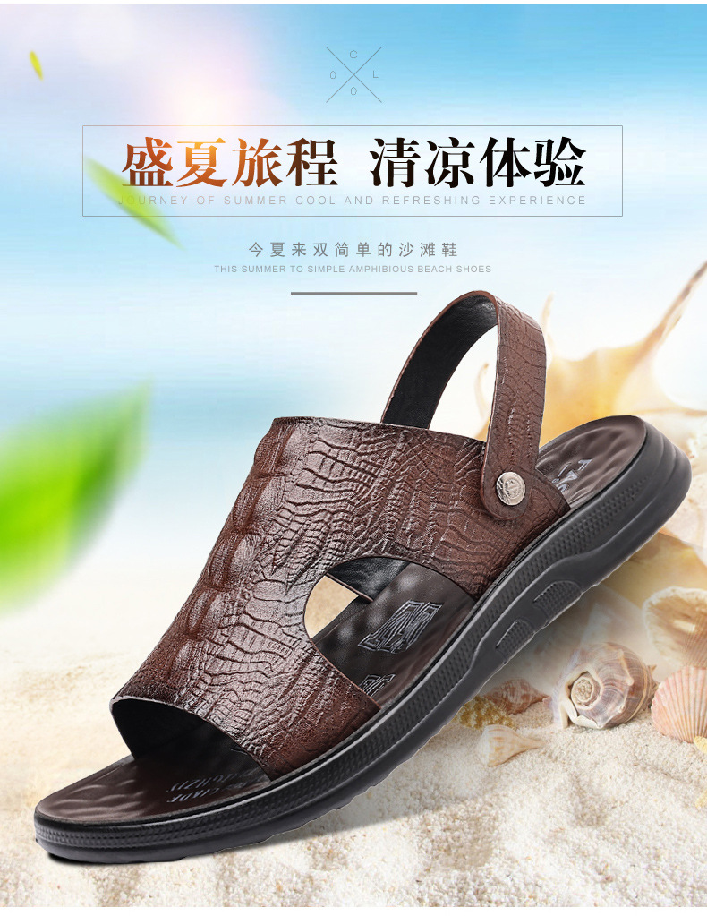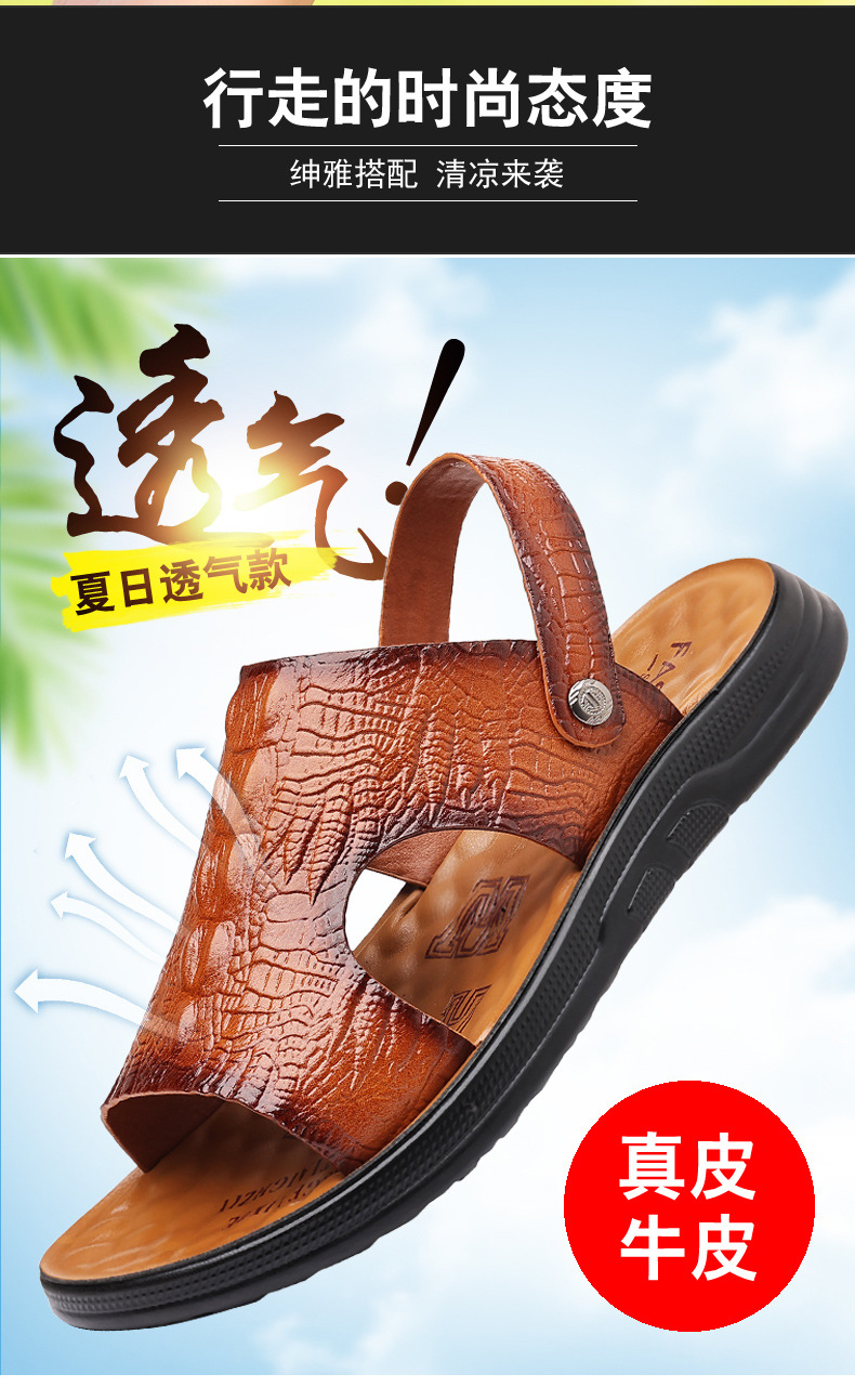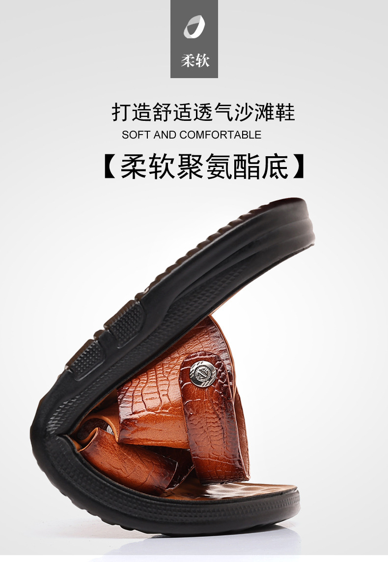 サンダル男夏2023新型真皮カジュアル靴滑り止めビーチ靴頭層牛皮両用外着スリッパ男
