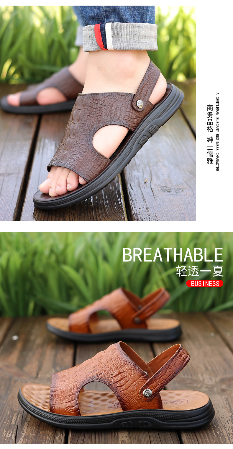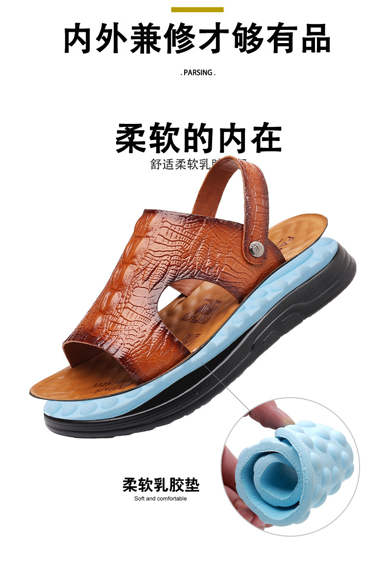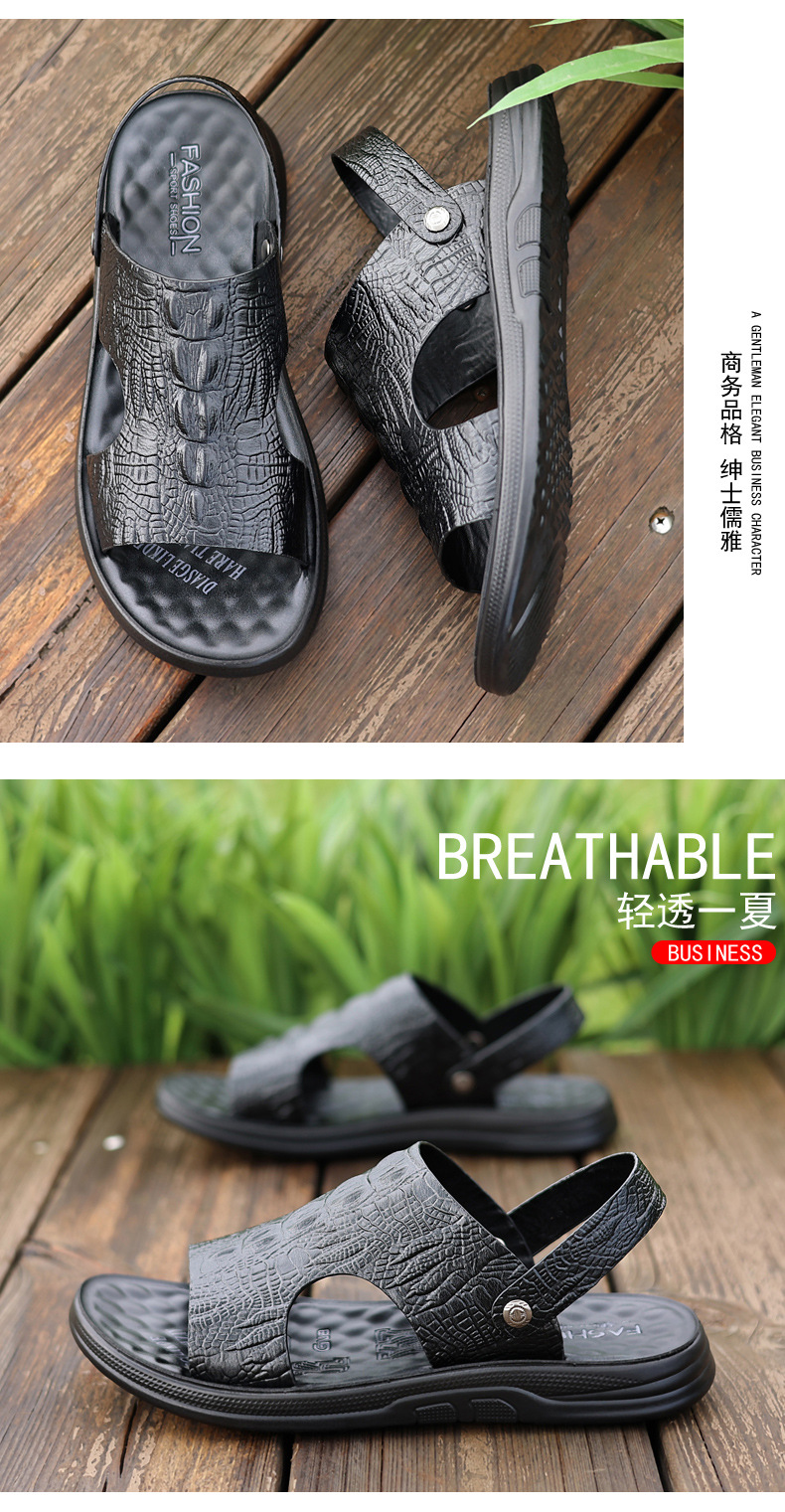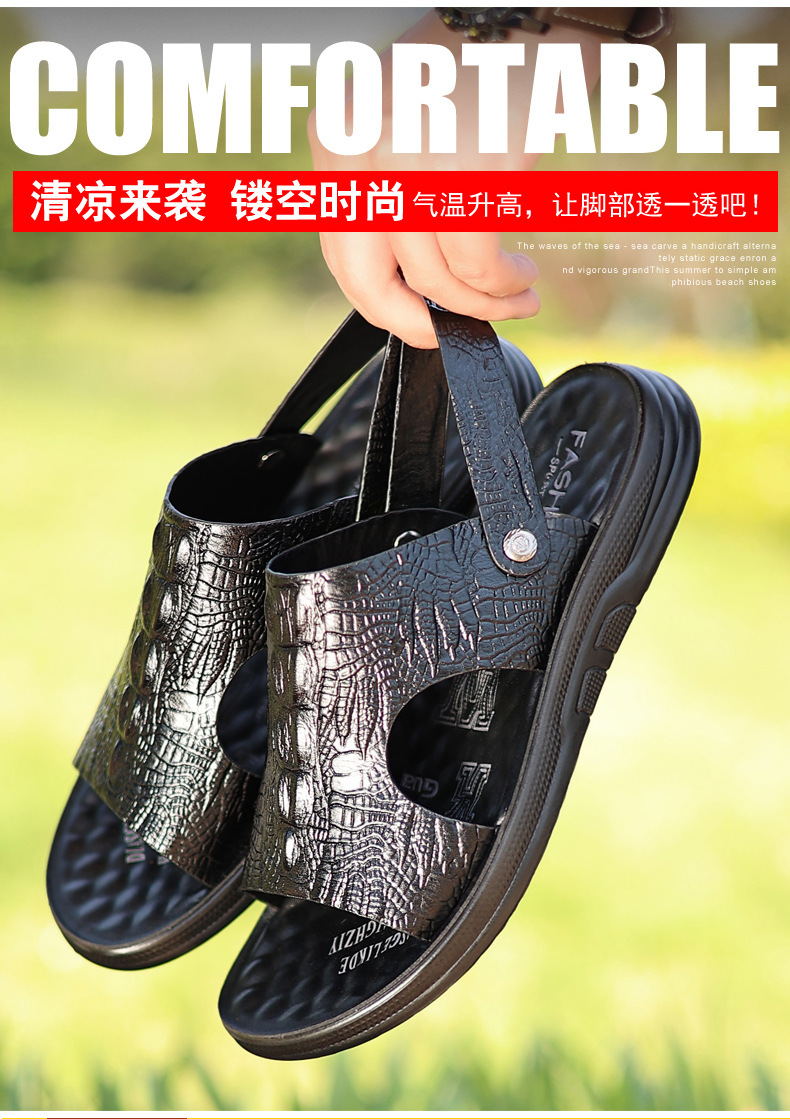 サンダル男夏2023新型真皮カジュアル靴滑り止めビーチ靴頭層牛皮両用外着スリッパ男