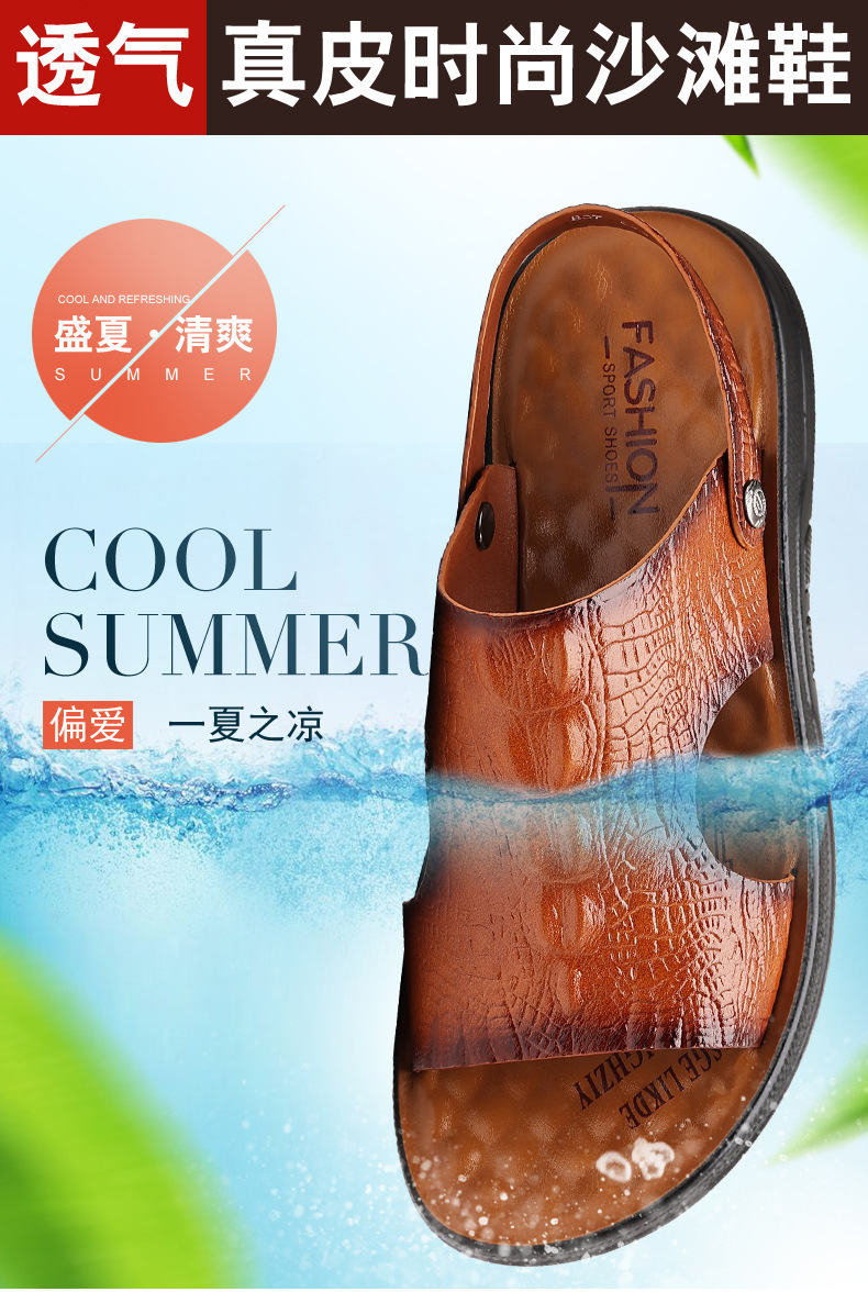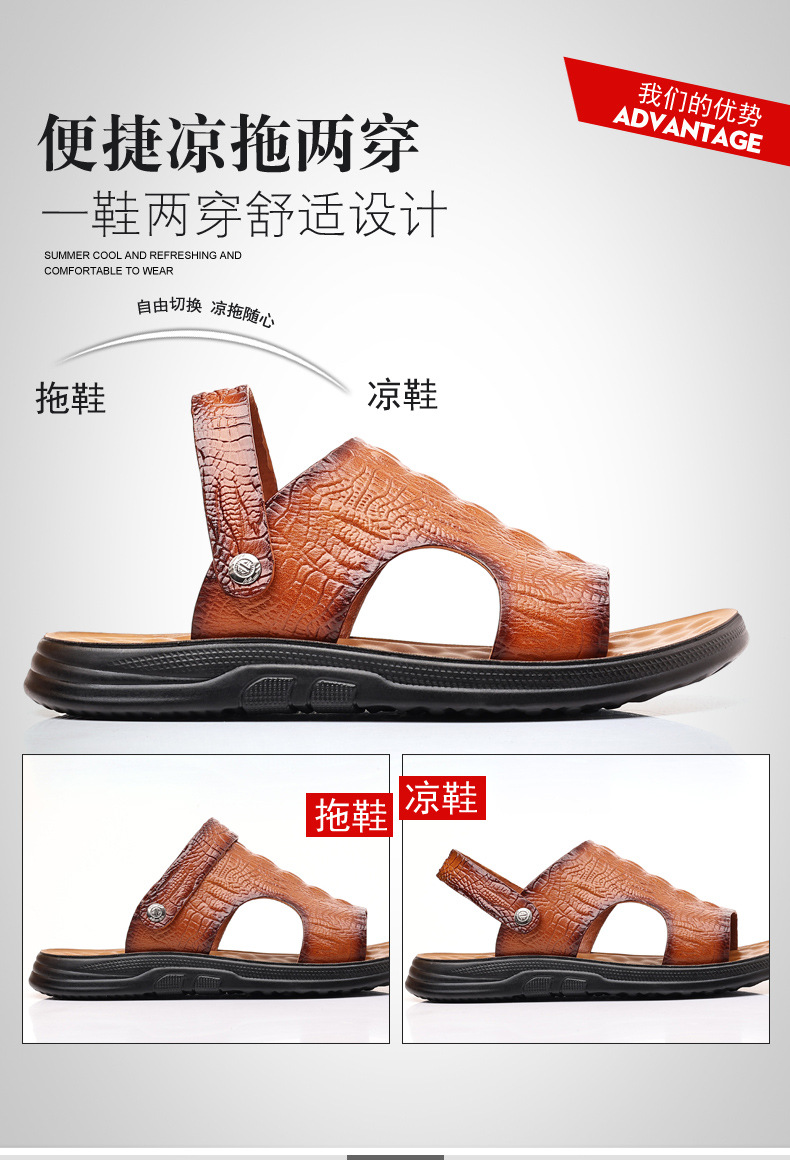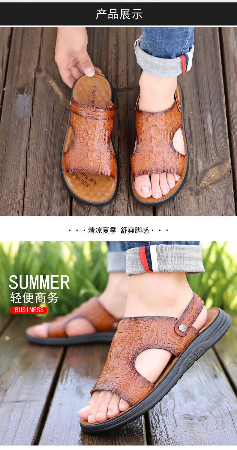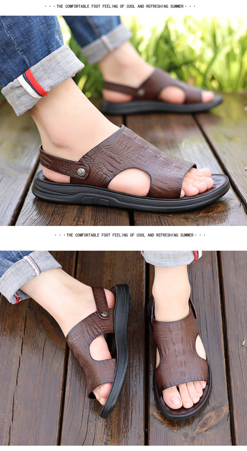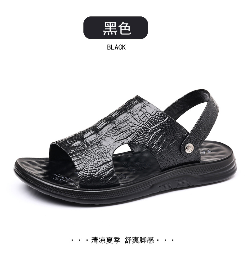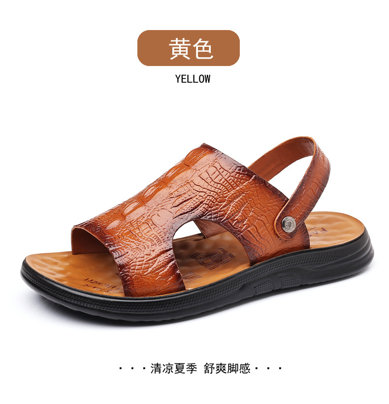 サンダル男夏2023新型真皮カジュアル靴滑り止めビーチ靴頭層牛皮両用外着スリッパ男