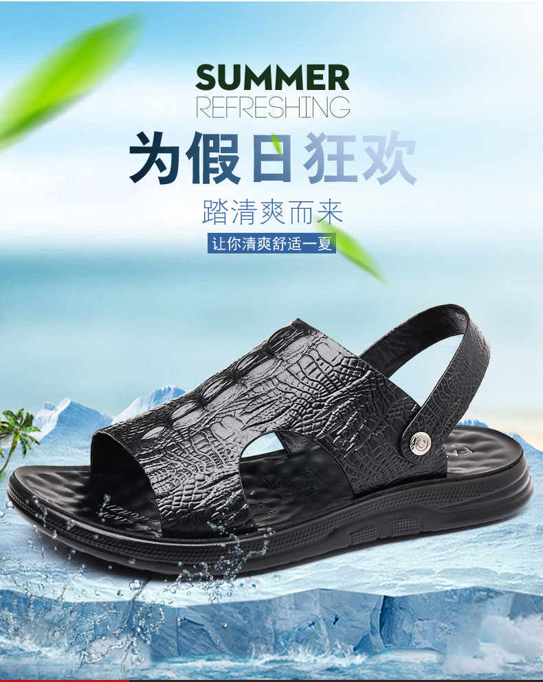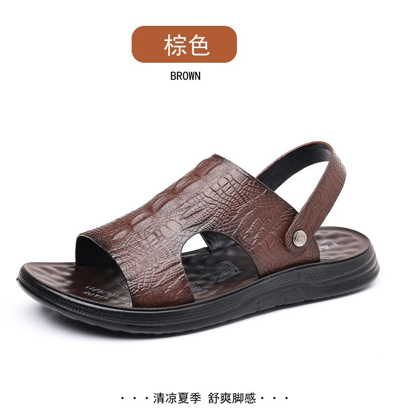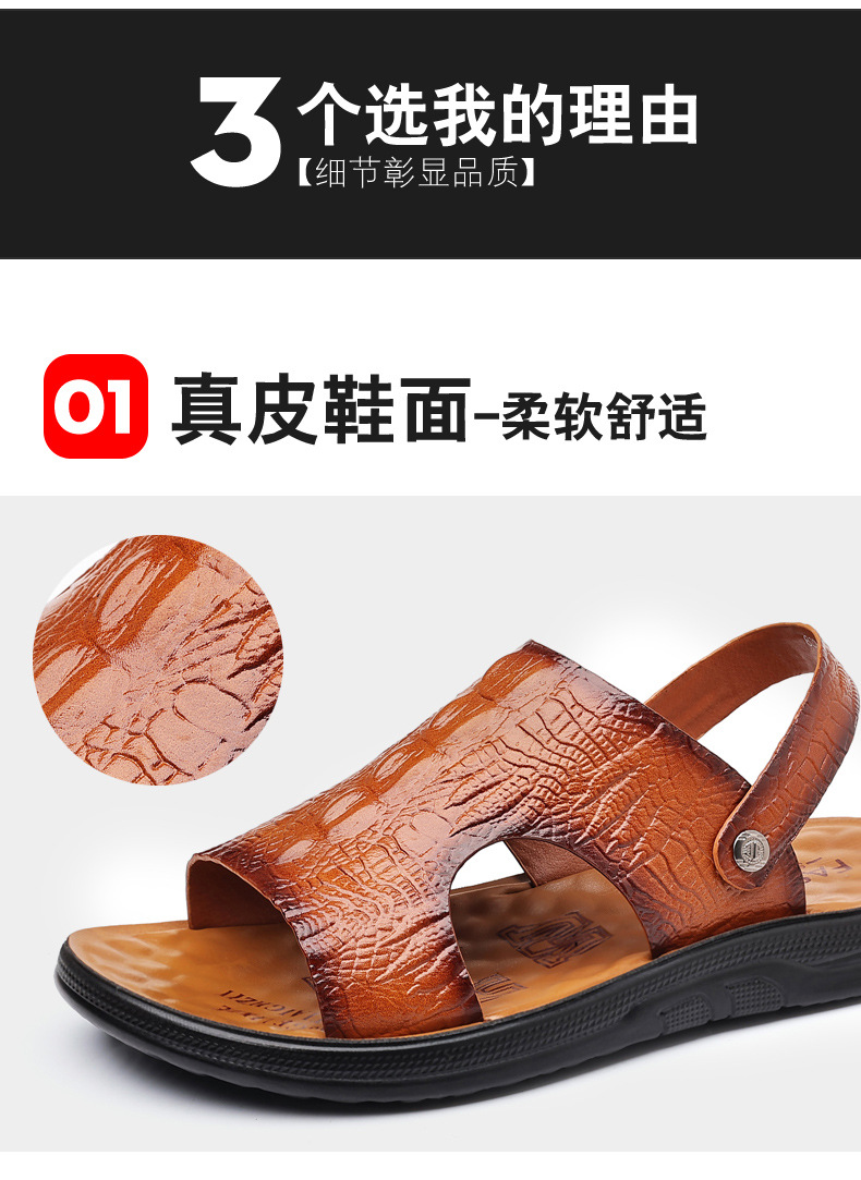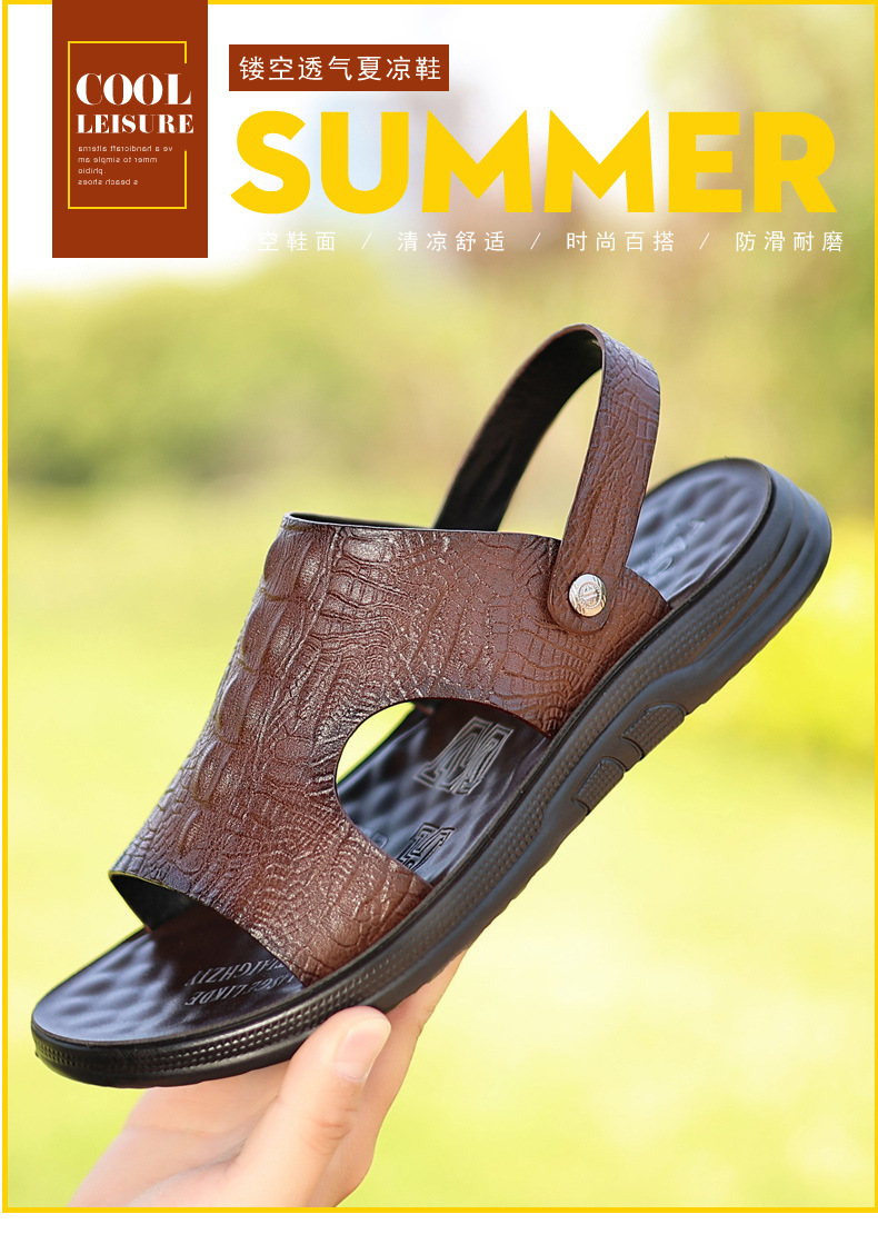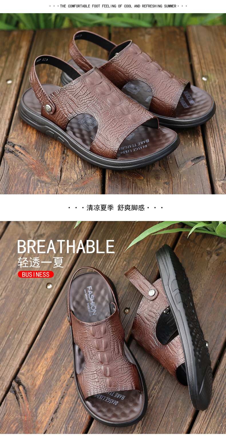 サンダル男夏2023新型真皮カジュアル靴滑り止めビーチ靴頭層牛皮両用外着スリッパ男