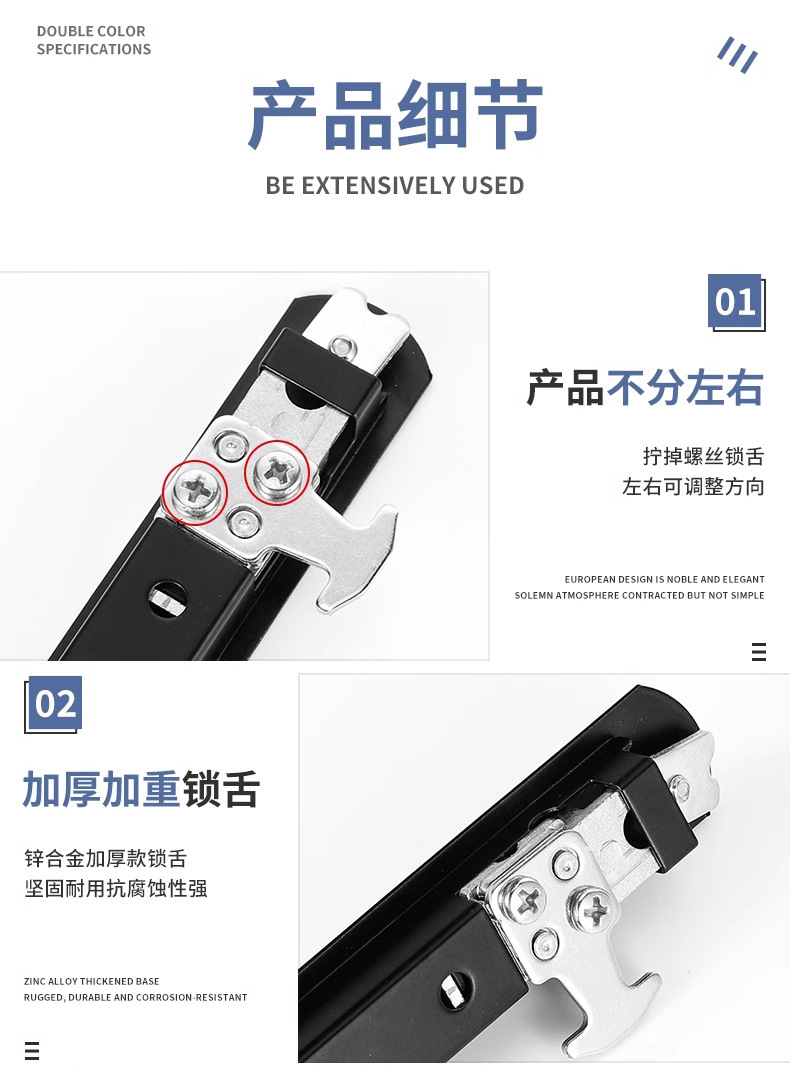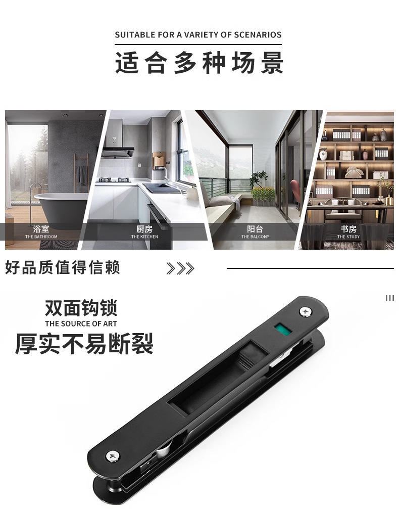 厚い材質のシングル両面押し引きドアロック調整ドアアルミ合金ドアバルコニードアと窓のフックロック押し引き移動ドアロック