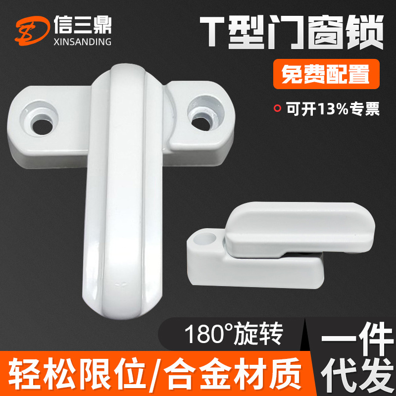 プラスチックスチール平開ドアと窓t型ロック窓ロックバックルアルミ合金盗難防止ロックドアと窓部品平開t型窓ロック