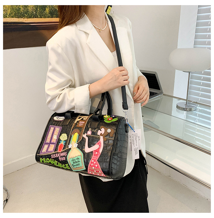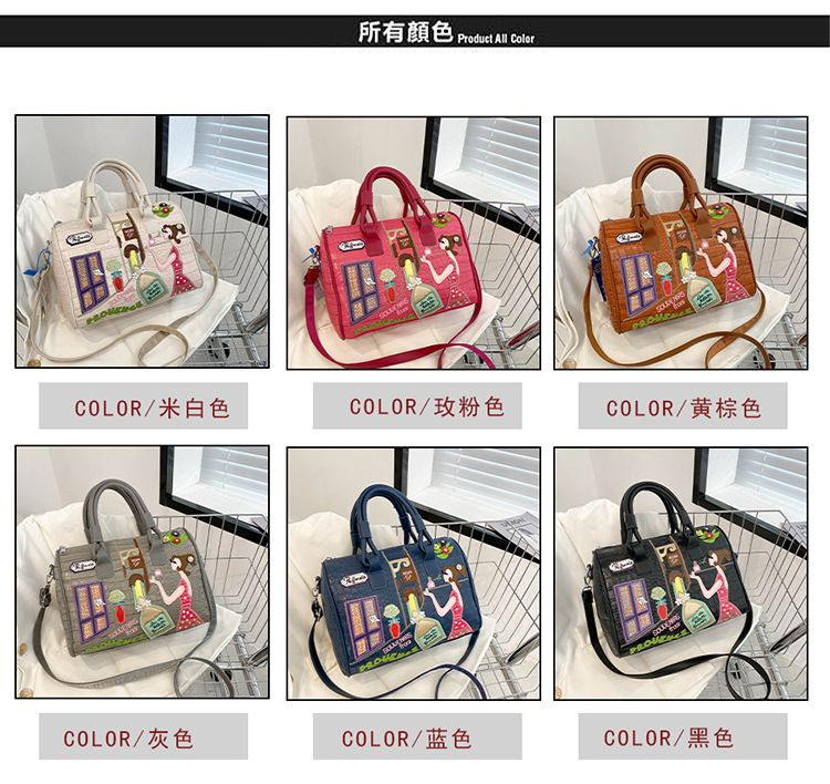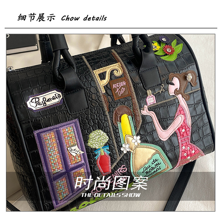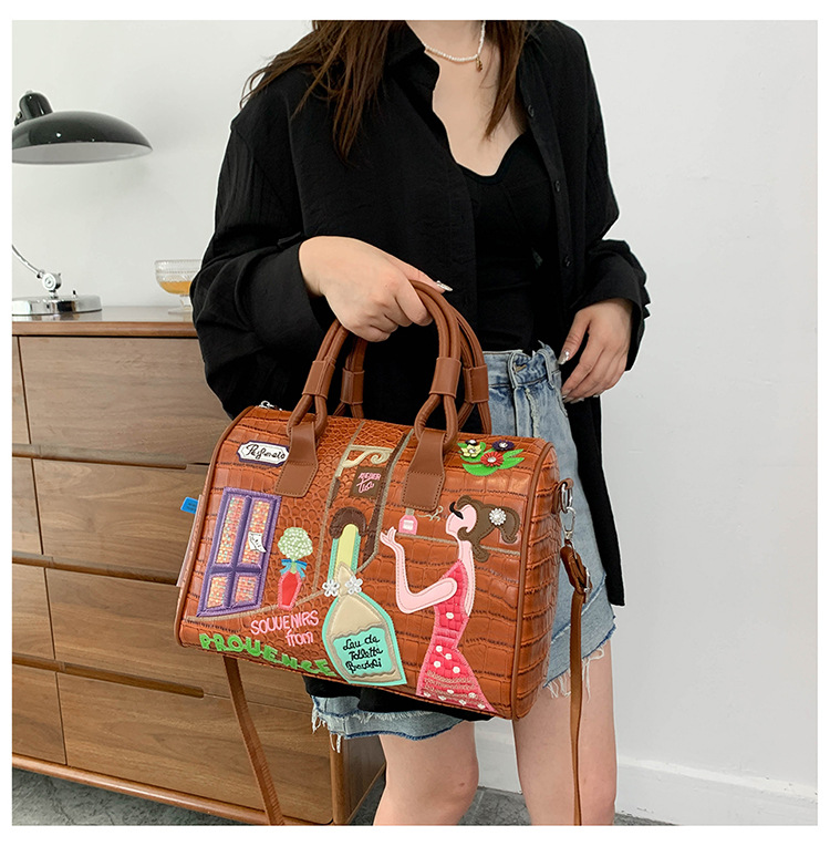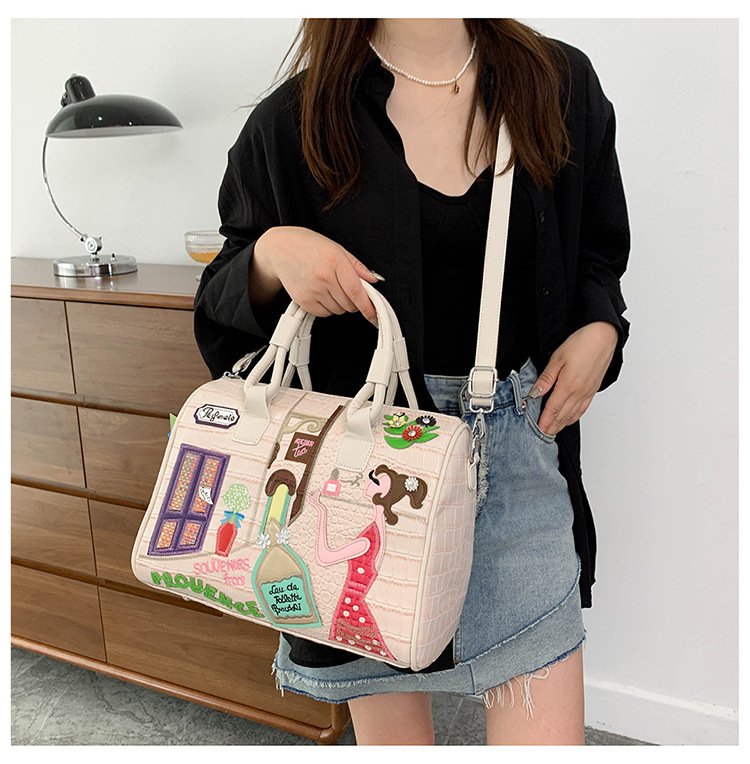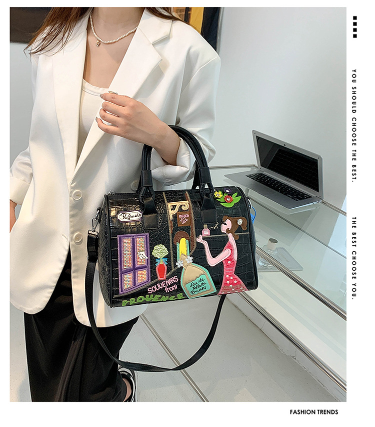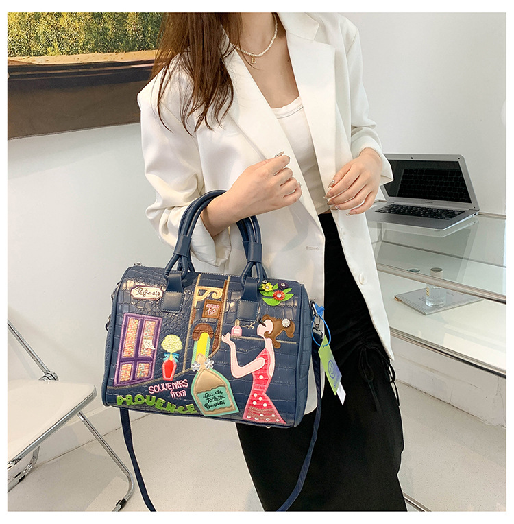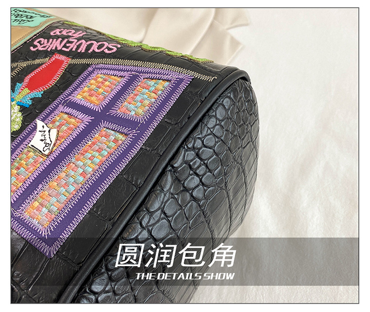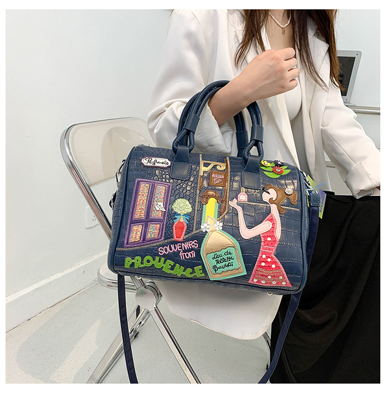 秋の新型の越境の潮流のハンドバッグの大衆の設計の女性のカバンの創意の刺繍の肩は斜めに女性のカバンのボストンバッグを掛けます。