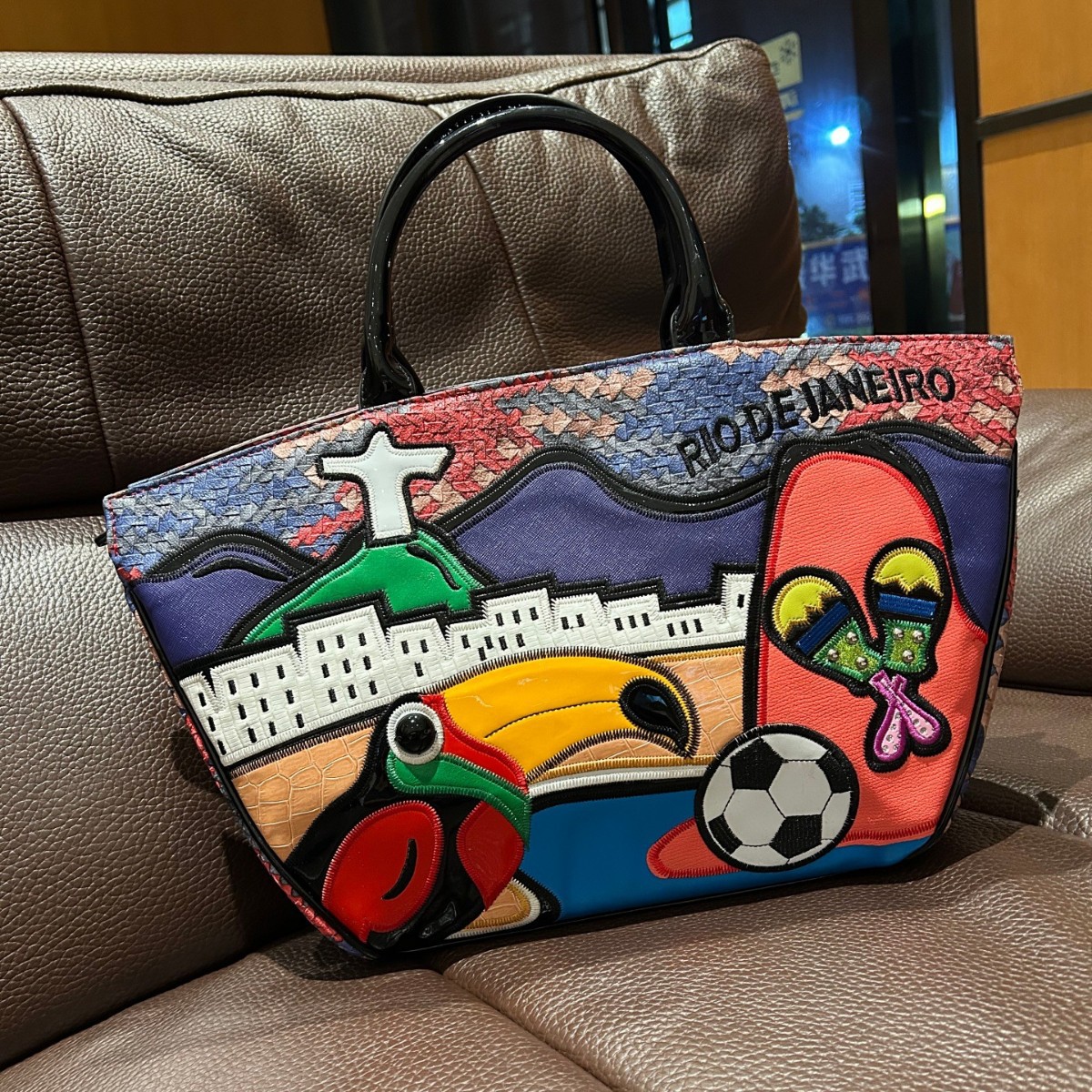 跨境直供刺绣手提包绣花包巴西巨嘴鸟主题创意奇葩包大容量托特包