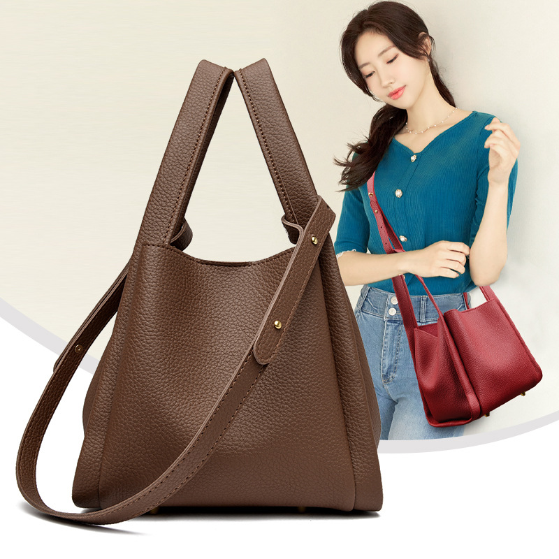 国境を越えた新しいスタイルの女性用バッグ、手提げかごバッグ、ソフトレザー、ファッショナブルな通勤用ショルダーバッグ、レターバッグ、高級感のあるバケットバッグ