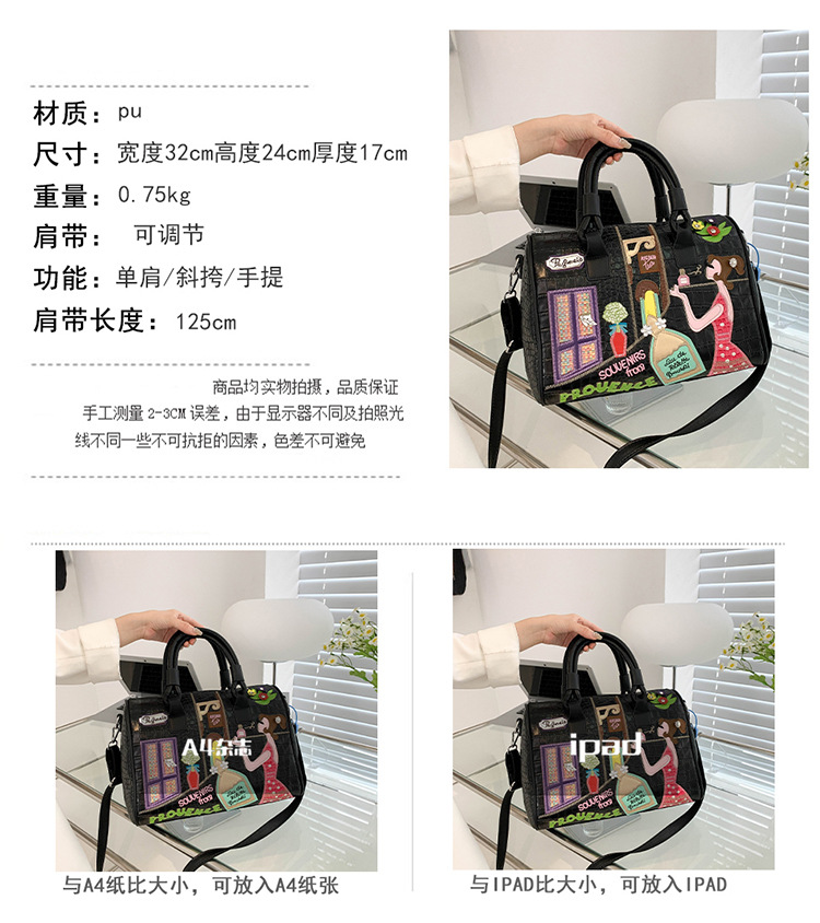バッグレディース新作ハンドバッグ斜めがけバッグ刺繍ジッパーステッチボストンバッグ枕カバー大容量高级感